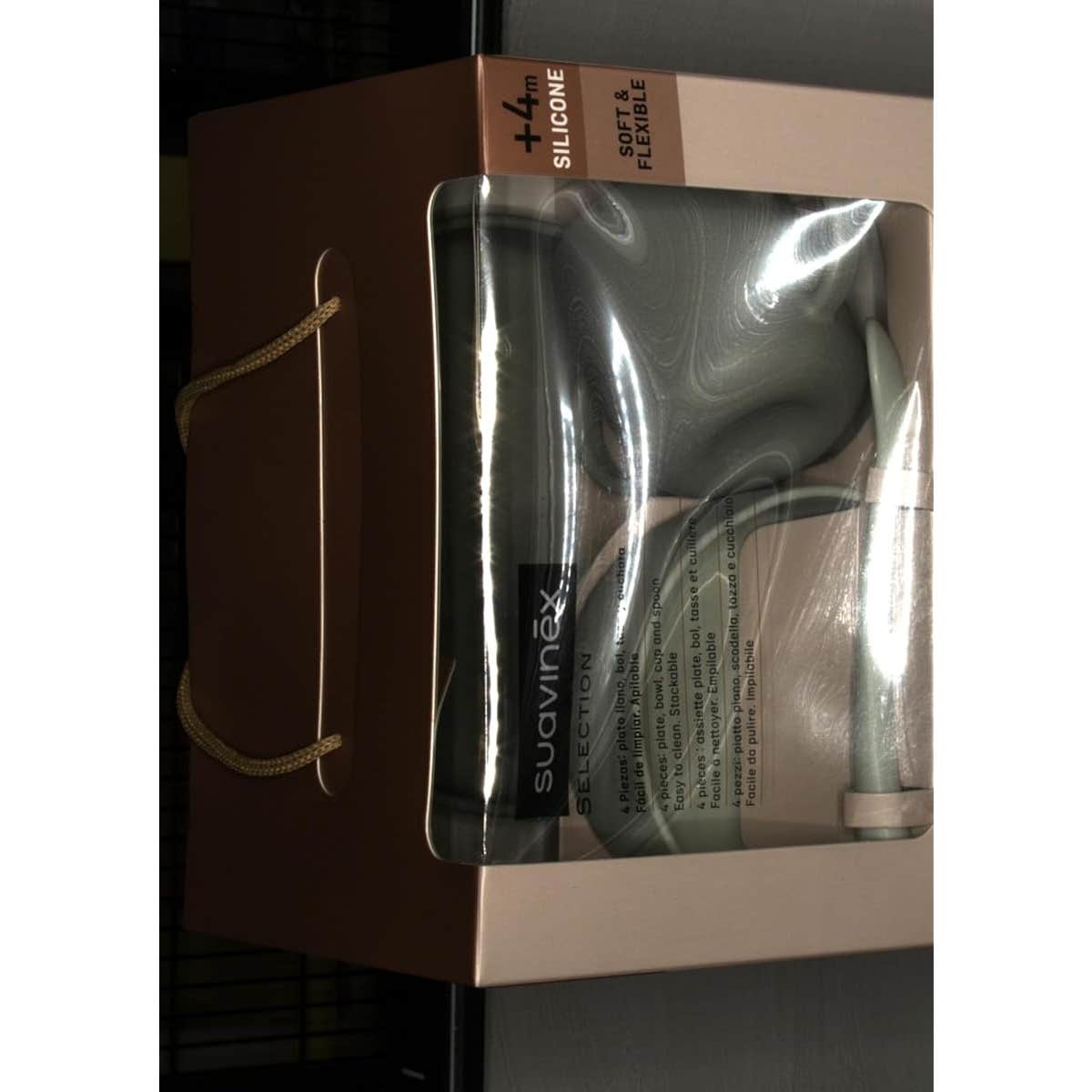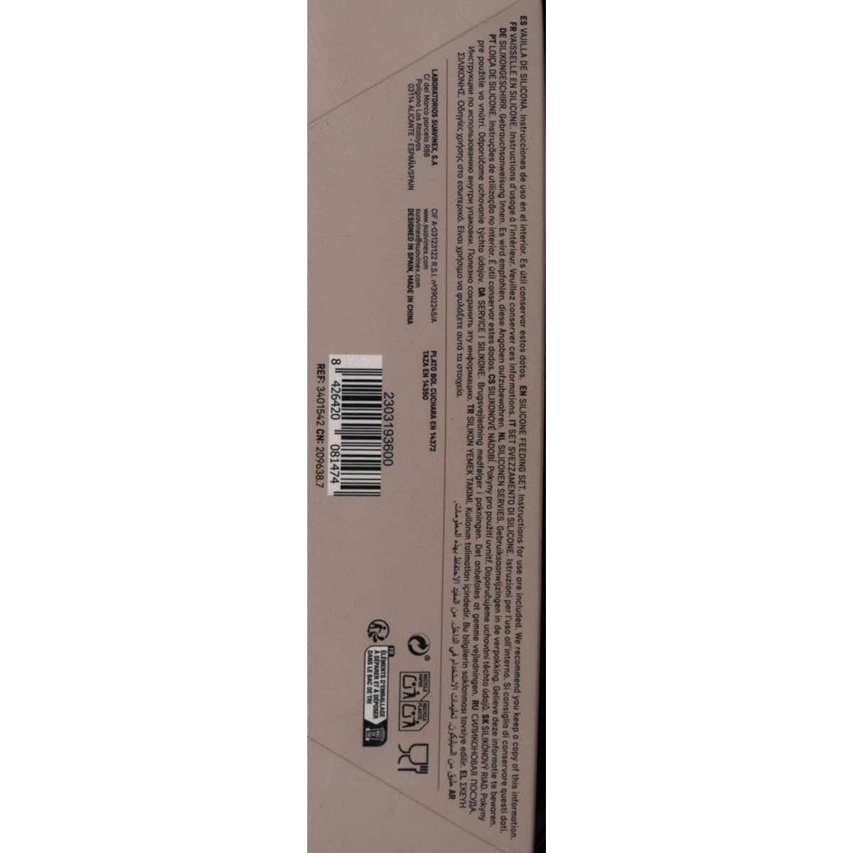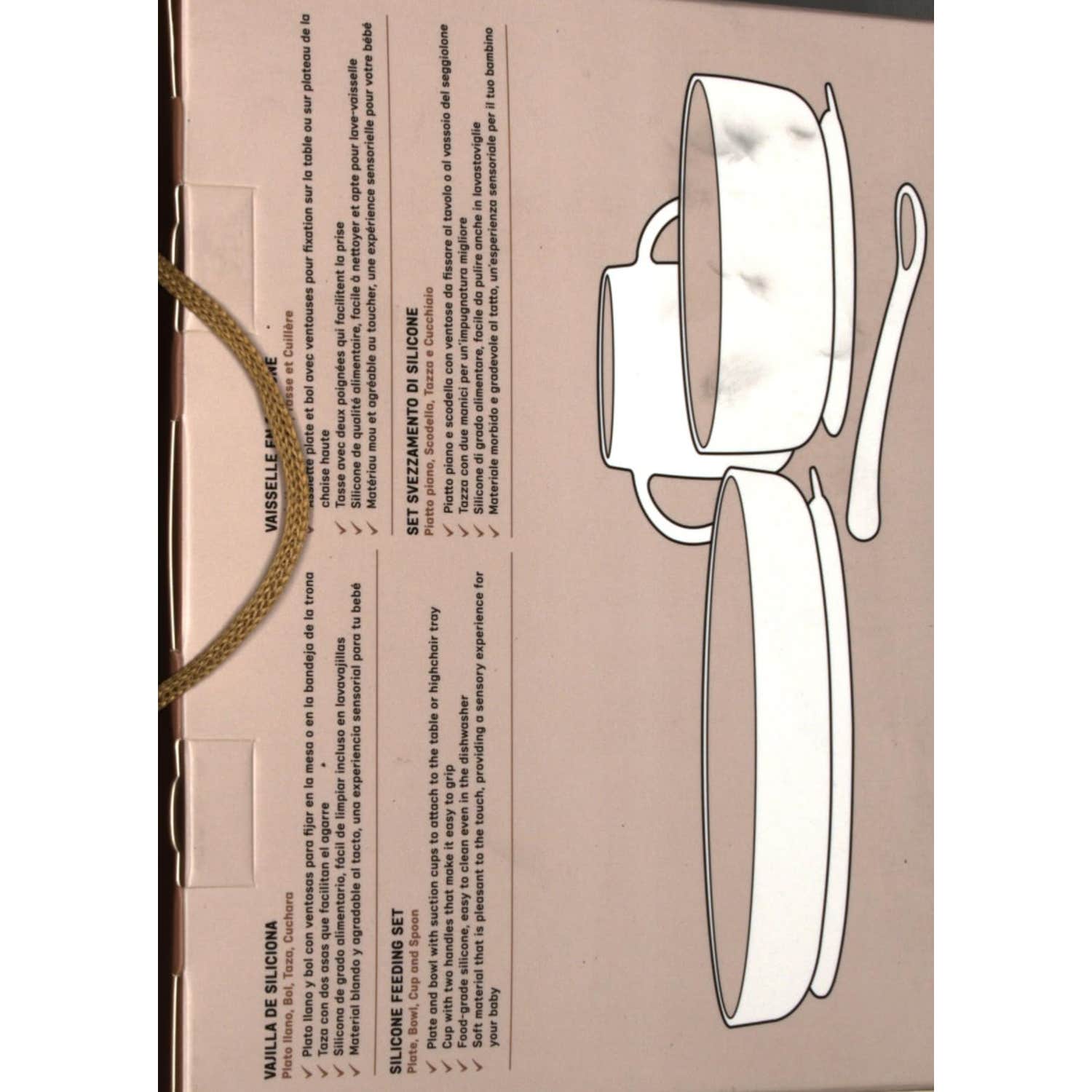 Vajilla infantil hecha de silicona de grado alimentario y pigmentos alimentarios seguros, que incluye un plato, un bol y una cuchara. Está diseñada para facilitar la transición a la alimentación sólida en los más pequeños. La vajilla es resistente, fácil de limpiar y segura para el bebé a partir de los 6 meses.