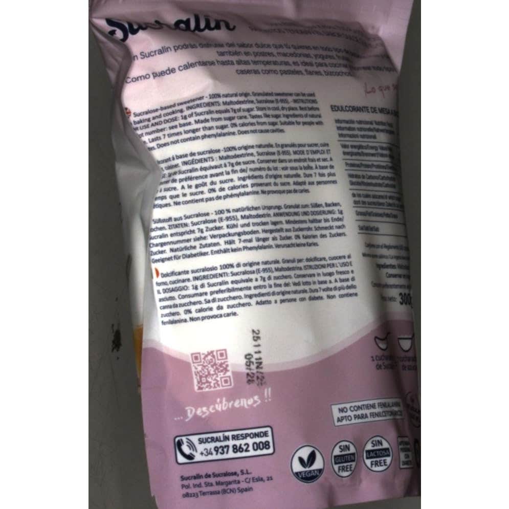 Sucralín granulado es un edulcorante no calórico que está hecho a base de maltodextrina, un ingrediente que proviene del maíz y no contiene gluten y puede ser consumido por celíacos e intolerantes a la lactosa. Indicado también para niños con sobrepeso o diabéticos.