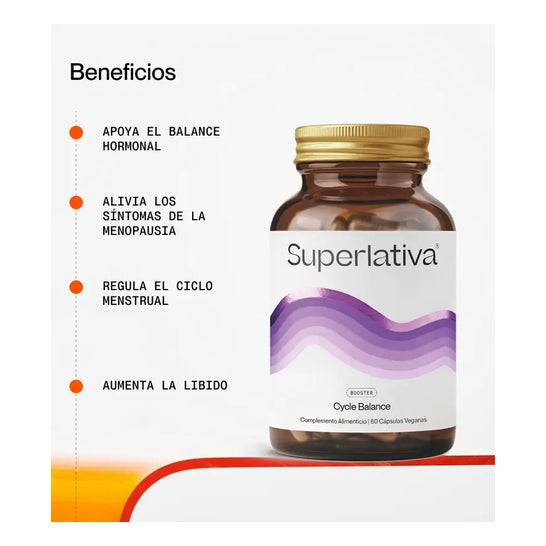 Superlativa Cycle Balance 60caps es un complemento alimenticio elaborado para contribuir al equilibrio hormonal de manera natural, para mujeres.