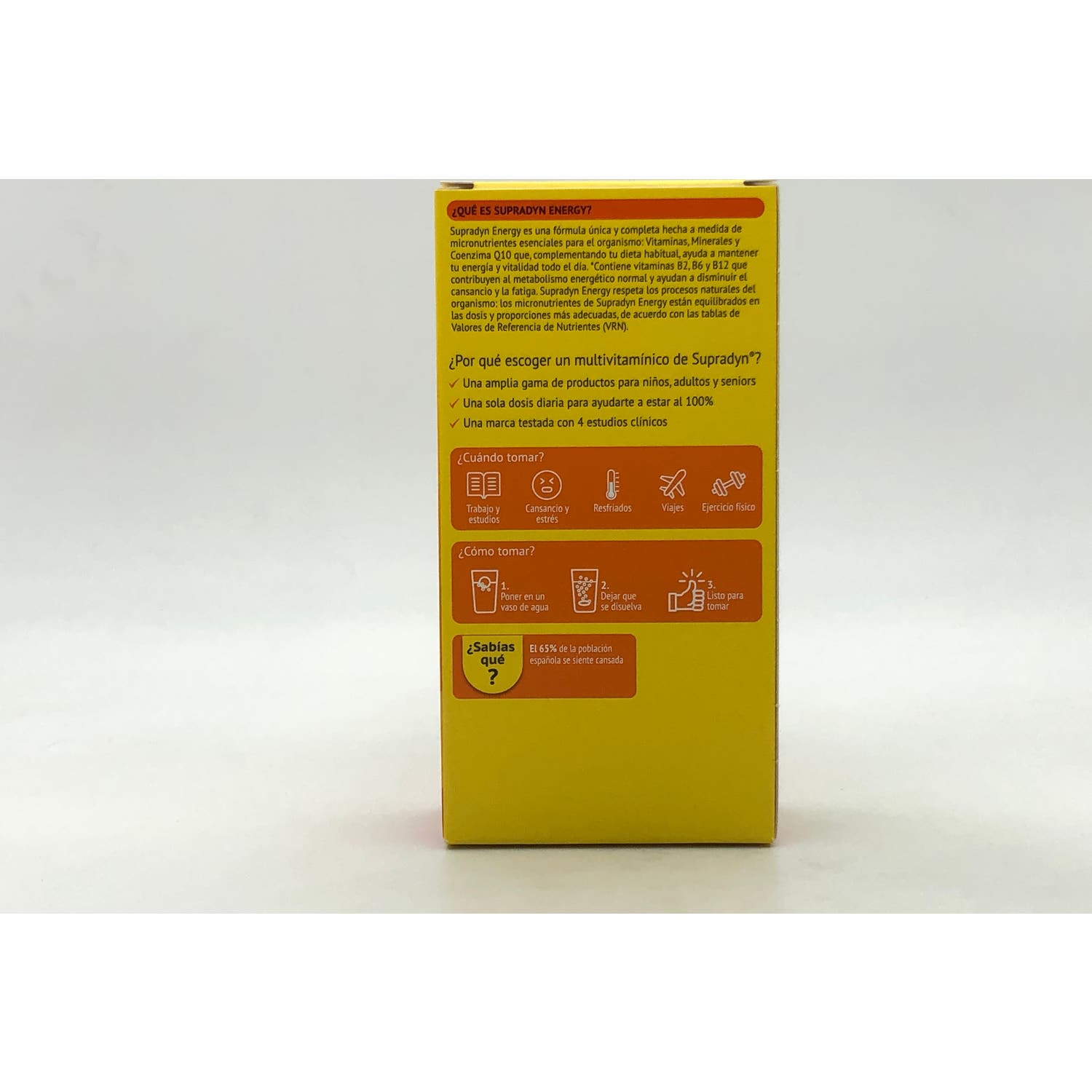 Supradyn Energy Efervescente 30comp es un complemento polivitamínico con minerales, que ayuda a mantener la energía y vitalidad durante todo el día.
