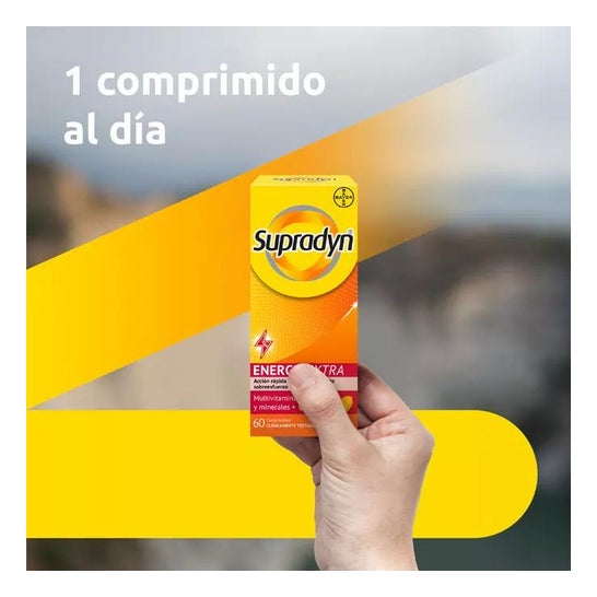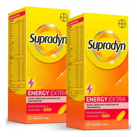 Supradyn Pack Energy Extra 2x60 comprimidos es un complemento alimenticio especialmente diseñado para ayudar a combatir la fatiga y cubrir posibles carencias nutricionales.