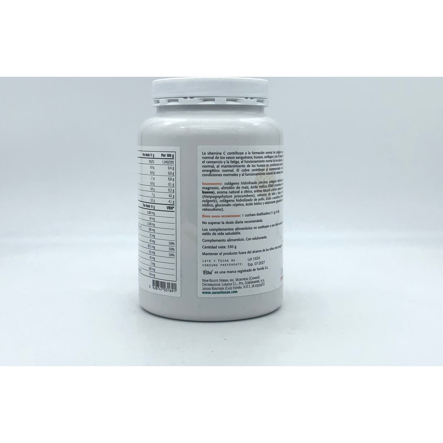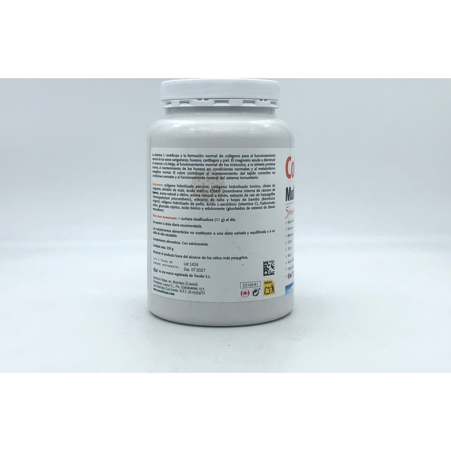 Sura Vitasan Colágeno Multi Max 5 330g es un complemento alimenticio a base de colágeno, vitamina C, ácido hialurónico, magnesio, cobre, boro, ácido málico y harpagofito. Ayuda a la formación normal de colágeno y a disminuir la sensación de cansancio y fatiga. Además, contribuye a la síntesis proteica normal y a mantener huesos y músculos en condiciones normales. Contiene 330g.