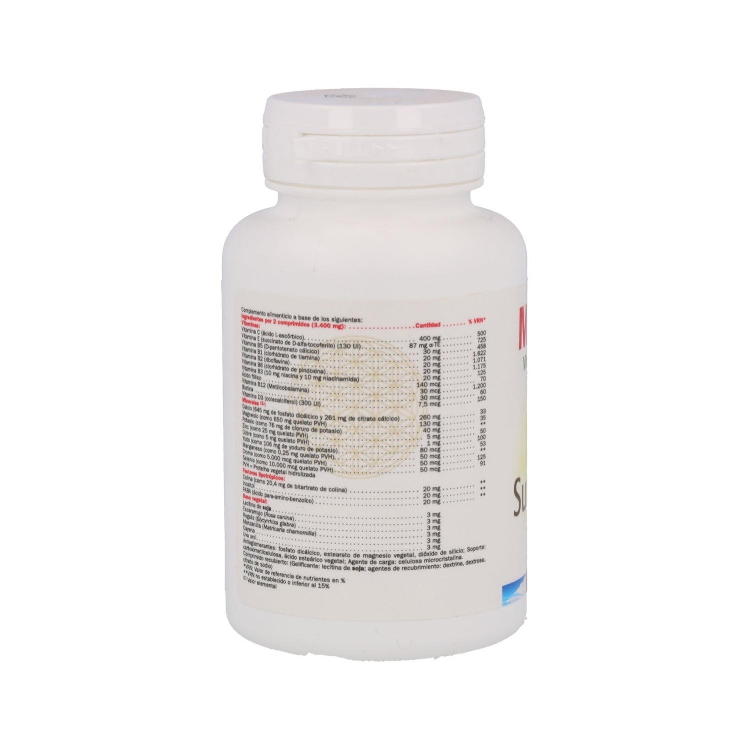 Elaborado a base 13 vitaminas, 9 minerales y factores lipotrópicos (colina, inositol y PABA) en una base vegetal para una mejor asimilación de los nutrientes. Es una fórmula muy completa de 26 ingredientes que se han incluido en sus formas más activas y biodisponibles, además mejora las diferentes funciones del organismo.
