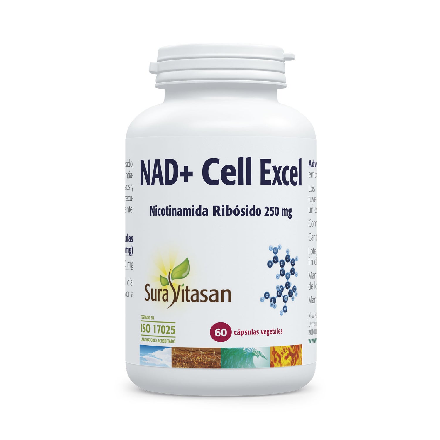 NAD+ Cell Excel es un complemento alimenticio que contiene cloruro de nicotinamida ribósido, precursor del NAD+ (nicotinamida adenina dinucleótico) que ayuda a aumentar los niveles de NAD+ en el cuerpo.