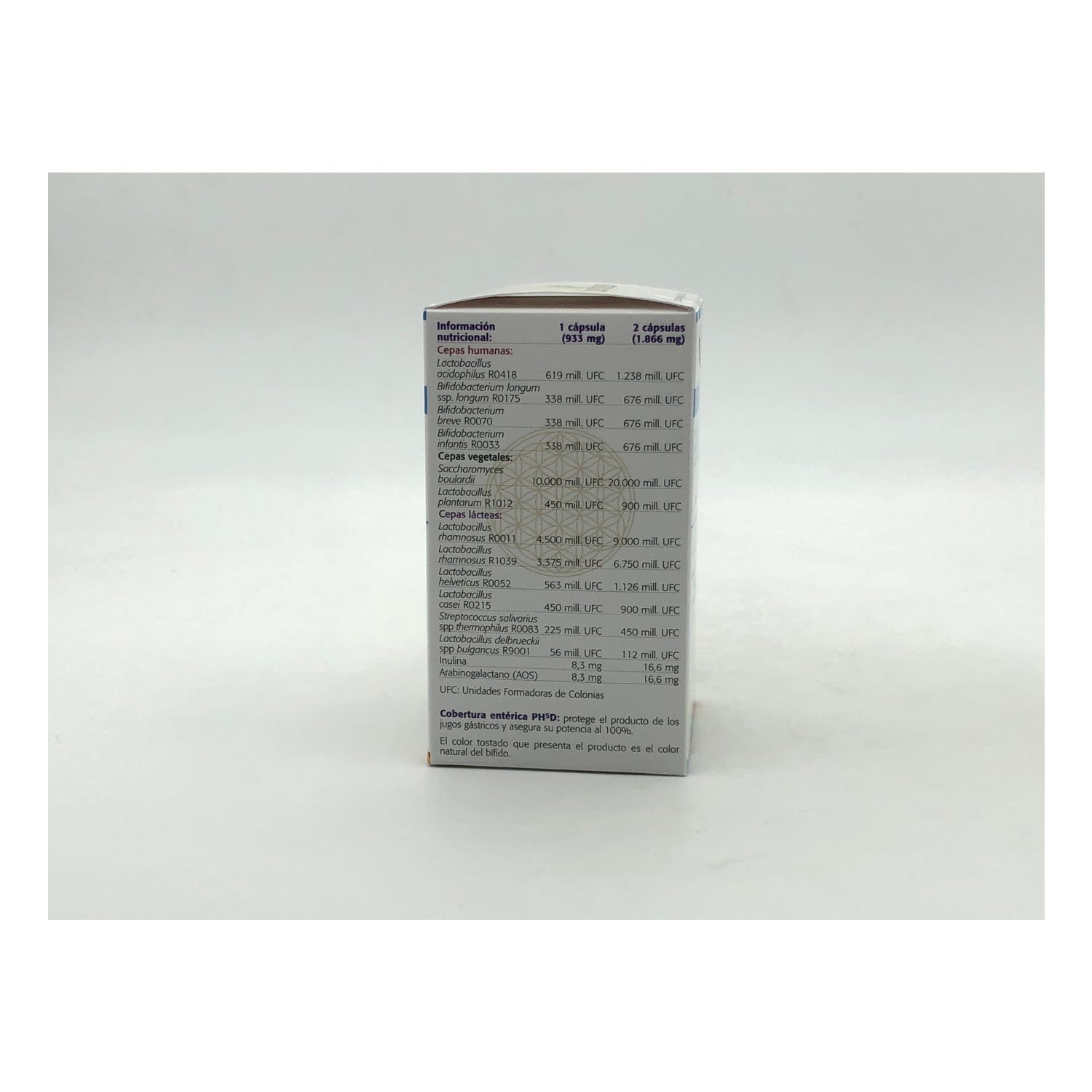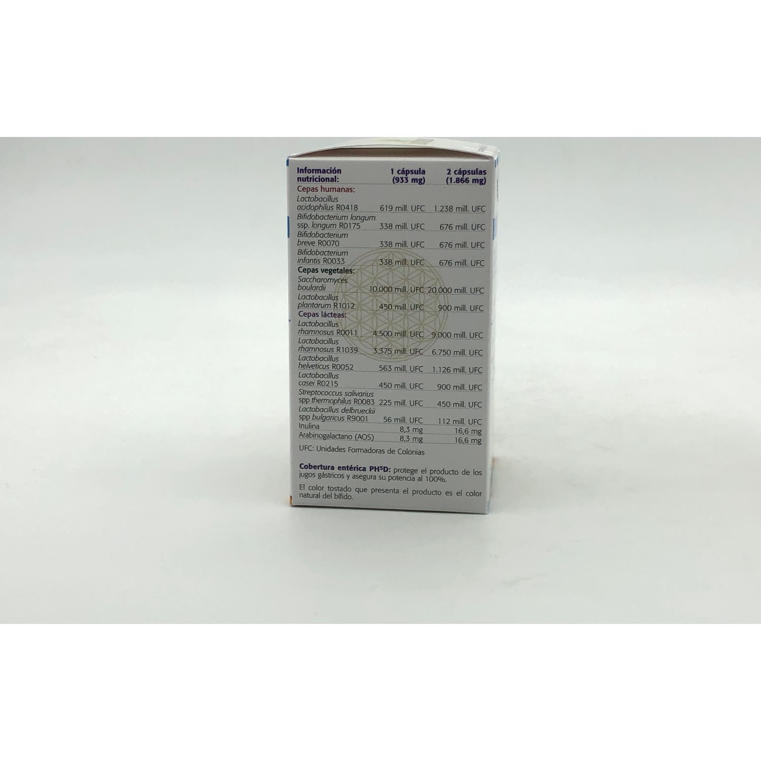 Cápsulas diseñadas con una combinación de 12 cepas bacterianas seleccionadas que en conjunto protegen y regeneran la flora bacteriana del organismo. Esto es especialmente importante cuando el organismo se ha visto expuesto a una reducción a causa de agentes externos como: