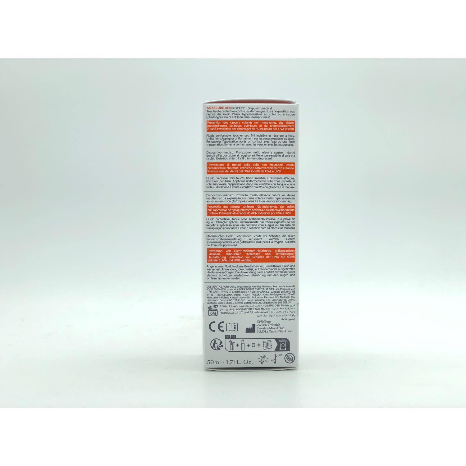 SVR AK Secure DM Protect 50ml está indicado para las pieles hipersensibles al sol o con riesgo: fototipos claros I y II o con inmunosupresión.
