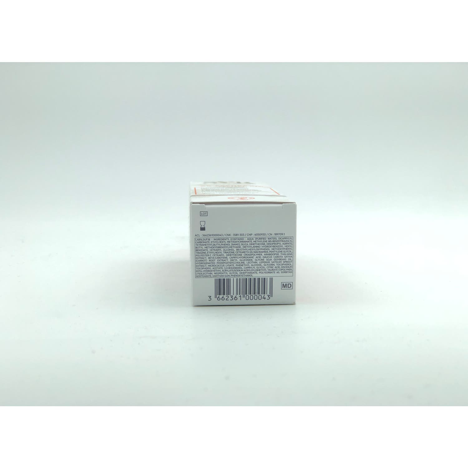 AQUA (PURIFIED WATER), DICAPRYLYL CARBONATE, ETHYLHEXYL METHOXYCINNAMATE, METHYLENE BIS-BENZOTRIAZOLYL TETRAMETHYLBUTYLPHENOL [NANO], SILICA, DIMETHICONE, DIISOPROPYL ADIPATE, BUTYL METHOXYDIBENZOYLMETHANE, DIETHYLAMINO HYDROXYBENZOYL HEXYL BENZOATE, CETEARYL ALCOHOL, BIS-ETHYLHEXYLOXYPHENOL METHOXYPHENYL TRIAZINE, ETHYLHEXYL TRIAZONE, CETEARETH-20, NIACINAMIDE, PENTYLENE GLYCOL, POLYESTER-7, CETEARYL DIMETHICONE CROSSPOLYMER, ARABIDOPSIS THALIANA EXTRACT, BETA-CAROTENE, CAPRYLHYDROXAMIC ACID, DAUCUS CAROTA SATIVA (CARROT) ROOT EXTRACT, DECYL GLUCOSIDE, GLYCINE SOJA (SOYBEAN) OIL, HYDROGENATED PHOSPHATIDYLCHOLINE, LECITHIN, LEPIDIUM SATIVUM SPROUT EXTRACT, MICROCOCCUS LYSATE, PHENETHYL ALCOHOL, GLYCERIN, TOCOPHEROL, TOCOPHERYL ACETATE, 1,2-HEXANEDIOL, CAPRYLYL GLYCOL, CITRIC ACID, DISODIUM EDTA, HYDROXYETHYL ACRYLATE/SODIUM ACRYLOYLDIMETHYL TAURATE COPOLYMER, LYSOLECITHIN, NEOPENTYL GLYCOL DIHEPTANOATE, POLYSORBATE 60, SORBITAN ISOSTEARATE, XANTHAN GUM, PHENOXYETHANOL. SIN PARABENOS. SIN ALCOHOL. SIN OCTOCRILENO. SIN PERFUME. SIN ACEITE MINERAL.