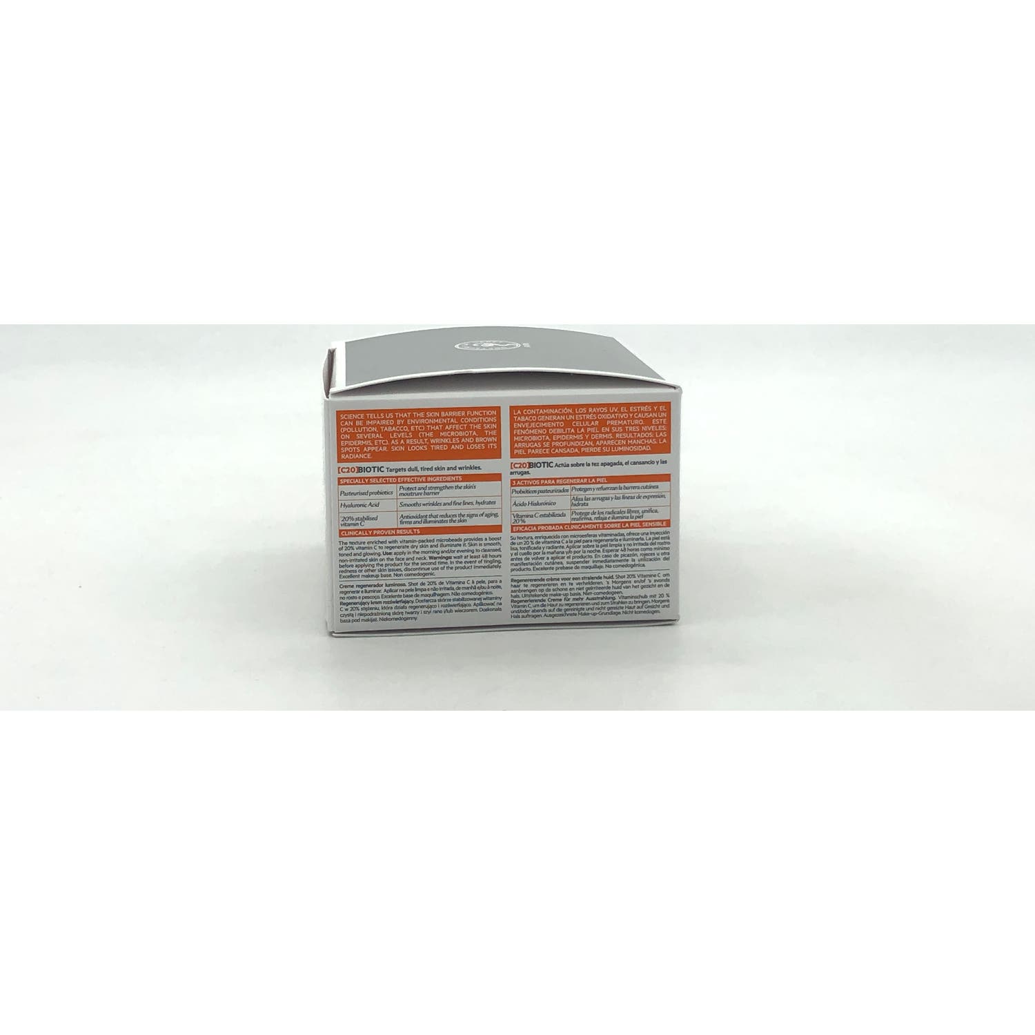 Elaborado con probióticos, vitamina C estabilizada y ácido hialurónico. Ayuda a matificar, mejorar la apariencia de las arrugas y alisar la piel. Con acción hidratante, ayuda a retener humedad dentro de la piel. Con péptidos que ayudan a suavizar las líneas de expresión y las arrugas.