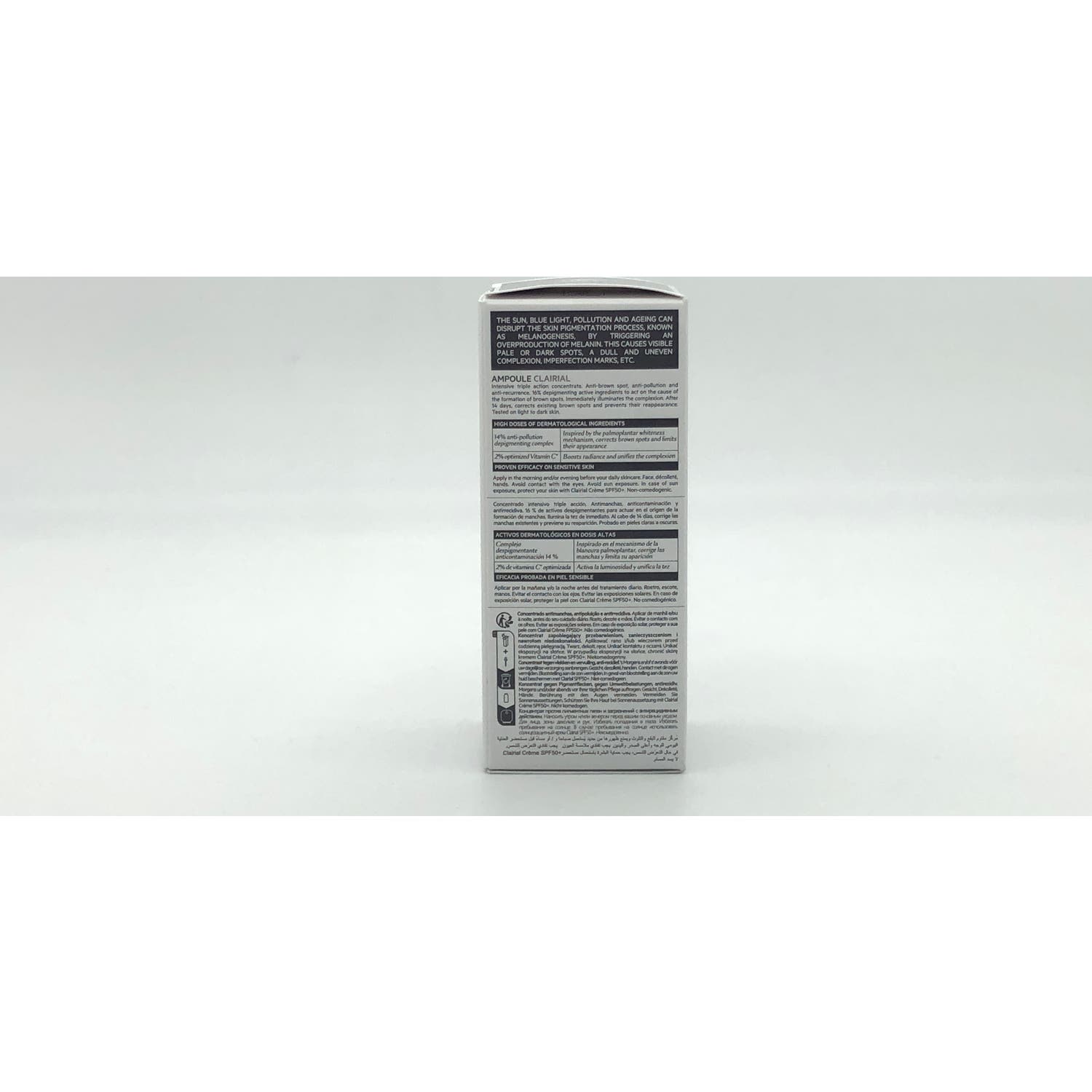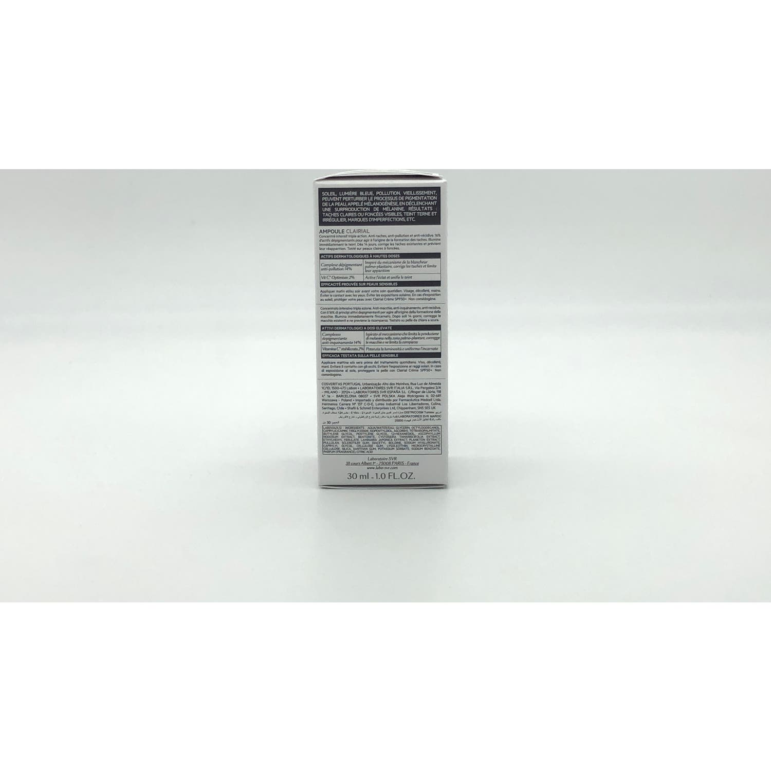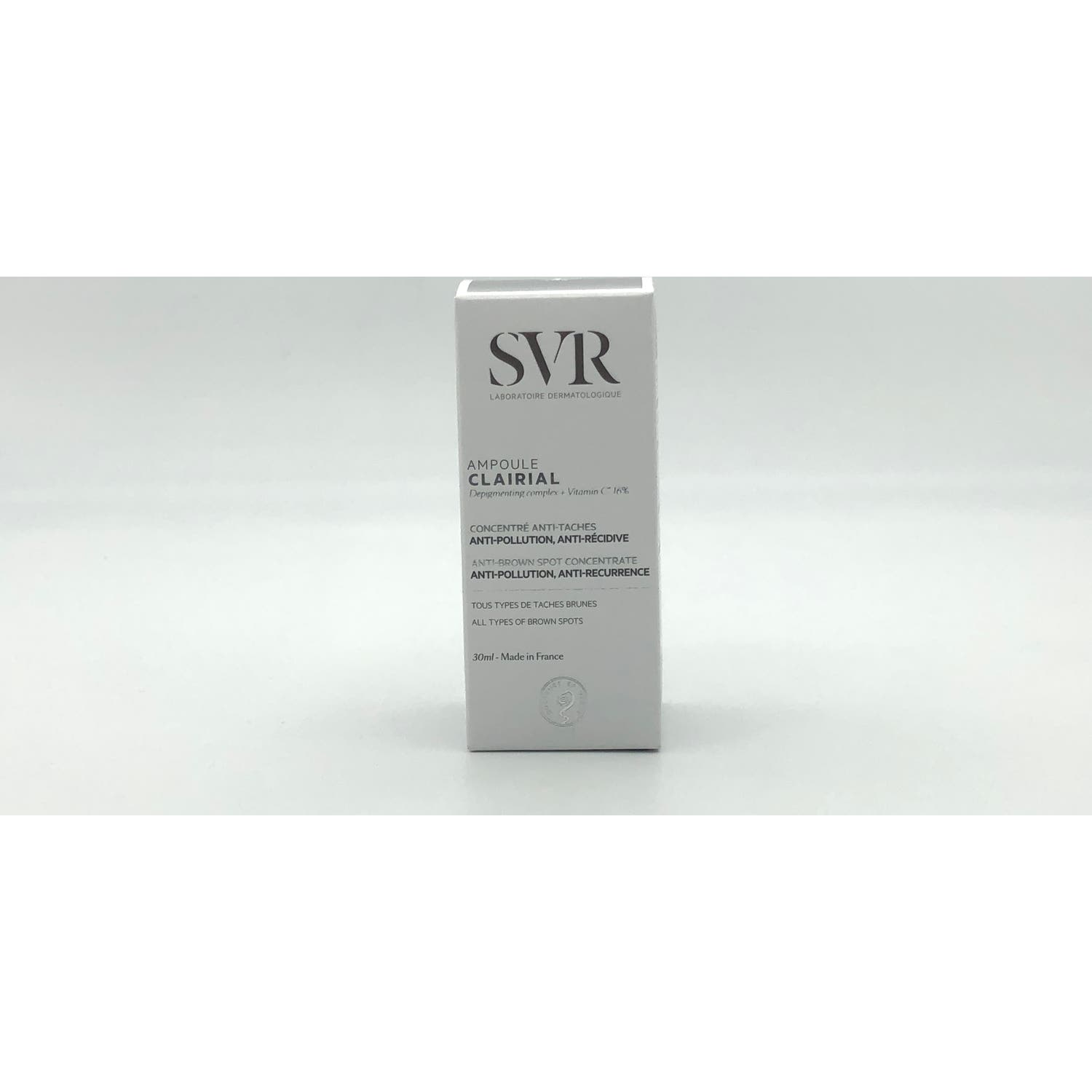 SVR Clairial Ampoule Concentrado Antimanchas 30ml es un sérum antimanchas, antipolución y antirecaída que ayuda a corregir y reducir visiblemente las manchas oscuras, a la vez que contribuye a prevenir y limitar su reaparición.