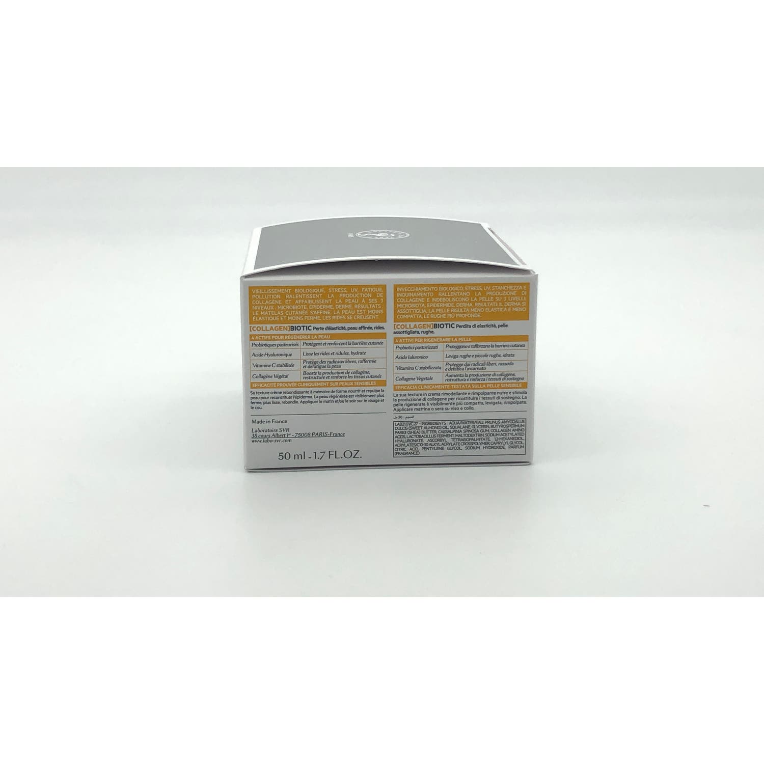 Ayuda a mantener la elasticidad e hidratación profunda de la epidermis. Formulada a base de una combinación de 4 ingredientes activos que promueven la función cutánea. Contiene probióticos pasteurizados, ácido hialurónico, vitamina C y colágenos vegetales, que favorecen la cohesión y firmeza de los tejidos del rostro.