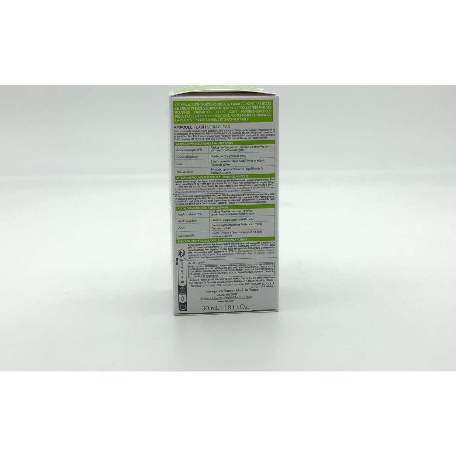 SVR Sebiaclear Ampoule Flash Concentrado Alisador 30ml es un concentrado facial que ayuda a suavizar las imperfecciones, rojeces y marcas, mientras estimula los mecanismos antiinflamatorios naturales de la piel.