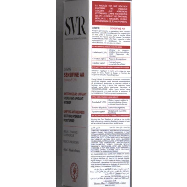SVR Sensifine AR Crème Teinteé Crema Unificadora Anti-rojeces 40ml es una crema hidratante con color que ayuda a cubrir y disimular las rojeces e imperfecciones, aportando un tono suave a base de pigmentos naturales.
