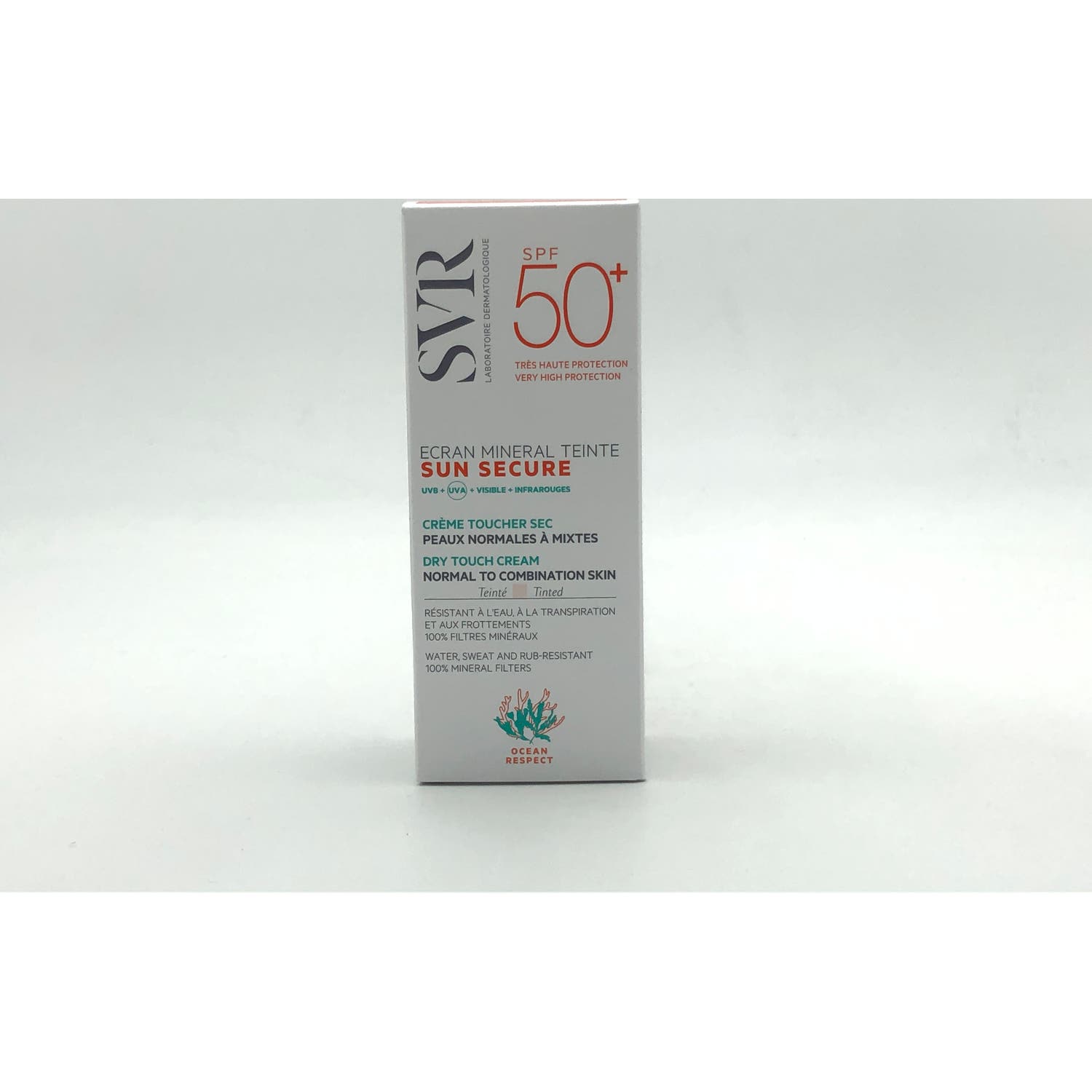 SVR Sun Secure Écran Mineral Teinté Crema Solar Toque Seco SPF50+ Piel Normal Mixta 60g es un protector solar con filtros solares minerales SPF50 con color.