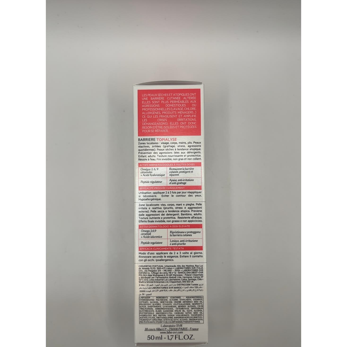 SVR Topialyse Barrière Crema Reparadora Anti-irritación Anti-picor 50ml es una crema específicamente diseñada para proteger a la piel frente a las agresiones químicas de los detergentes, entre otros factores externos.