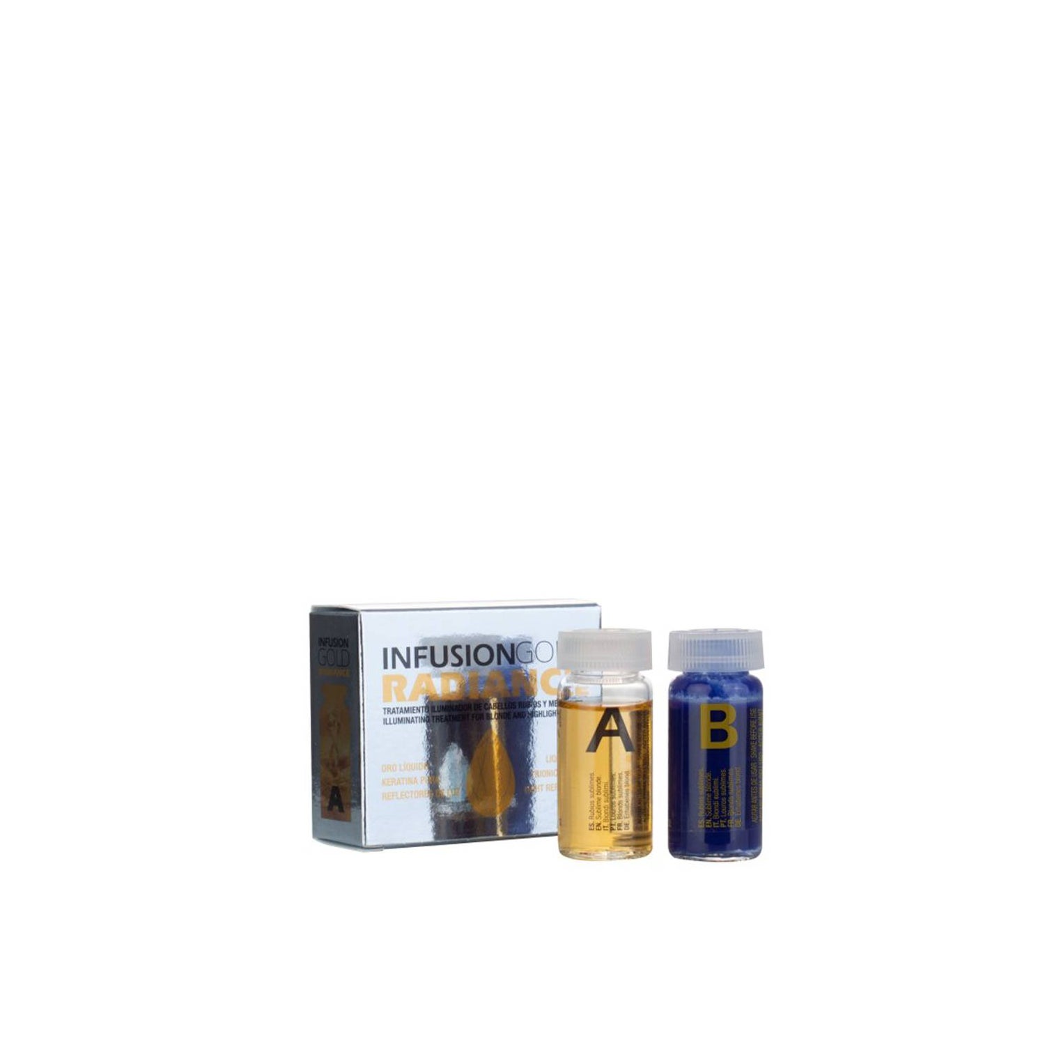 Tahe Botanic Infusion Gold Radiance A+B Tratamento de Iluminação es un tratamiento diseñado para realzar el brillo y proporcionar nutrición al cabello. Este producto es ideal para matizar cabellos rubios y aquellos con mechas, ofreciendo una solución eficaz para mejorar su luminosidad.