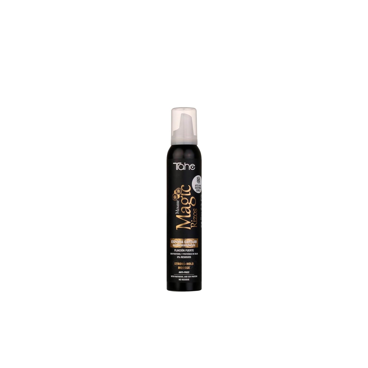 Tahe Magic Rizos Espuma de Fixação Forte es un producto diseñado para proporcionar una fijación robusta y flexible, gracias a su textura ligera que no deja residuos.