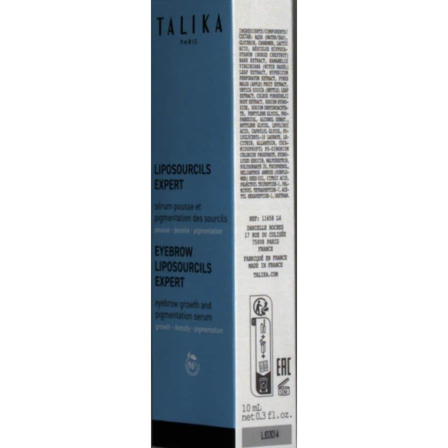 Talika Lipocils Expert Gel Cejas 10ml es un tratamiento que estimula el crecimiento de las cejas y además, actúa sobre su pigmentación natural. Compuesto por un 97% de ingredientes naturales. Su fórmula se basa en el Complejo Vegetal Mitídico de Talika (hammanelis, manzana, ortiga, castaño de indias, hierba de San Juan) que ayuda a estimular el crecimiento de las cejas.