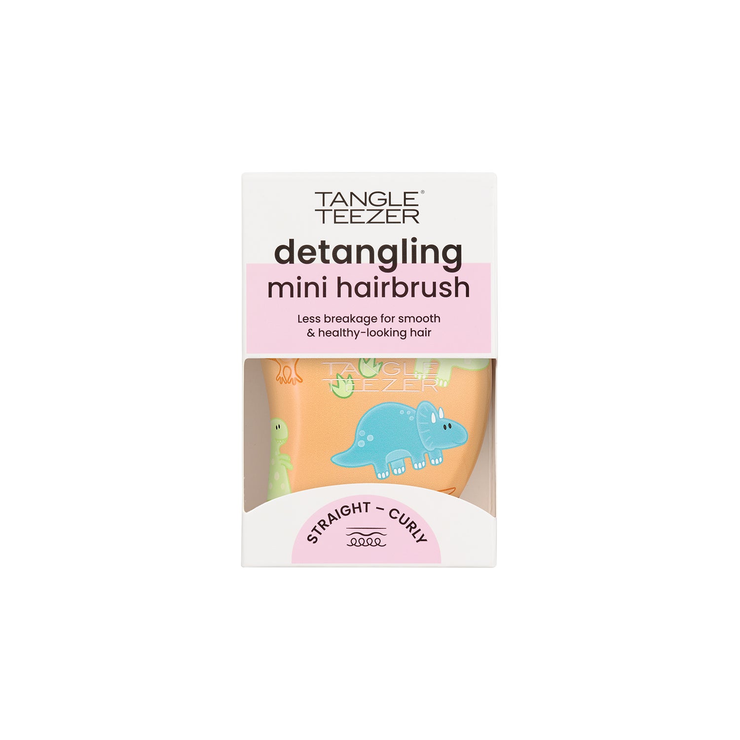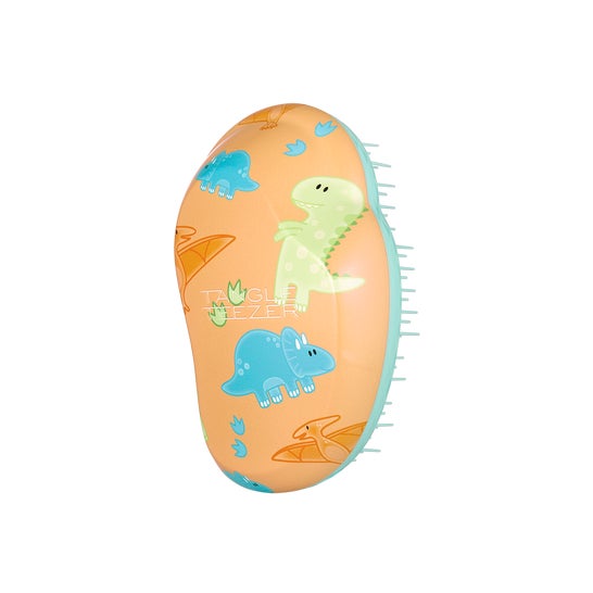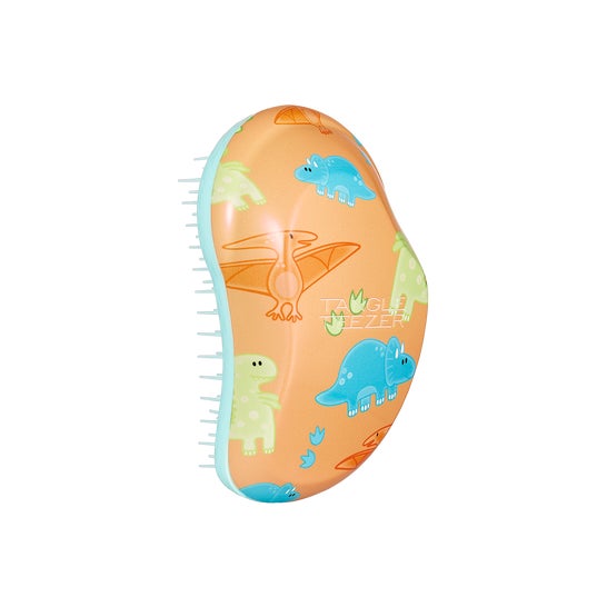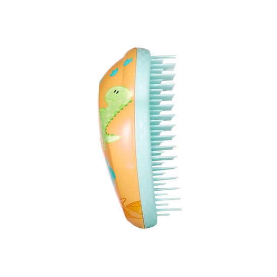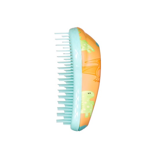 Cepillo compacto para niños. Desarrollado con tecnología única de sistema de dos niveles. Ayuda a desterrar enredos y nudos mientras previene roturas y daños. El mango es de fácil sujeción y facilita el empleo, ayudando a mejorar la apariencia, con un atractivo resultado final. Tiene un diseño de dinosaurios en la superficie.