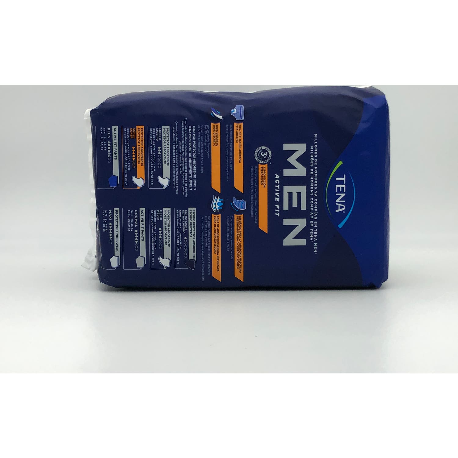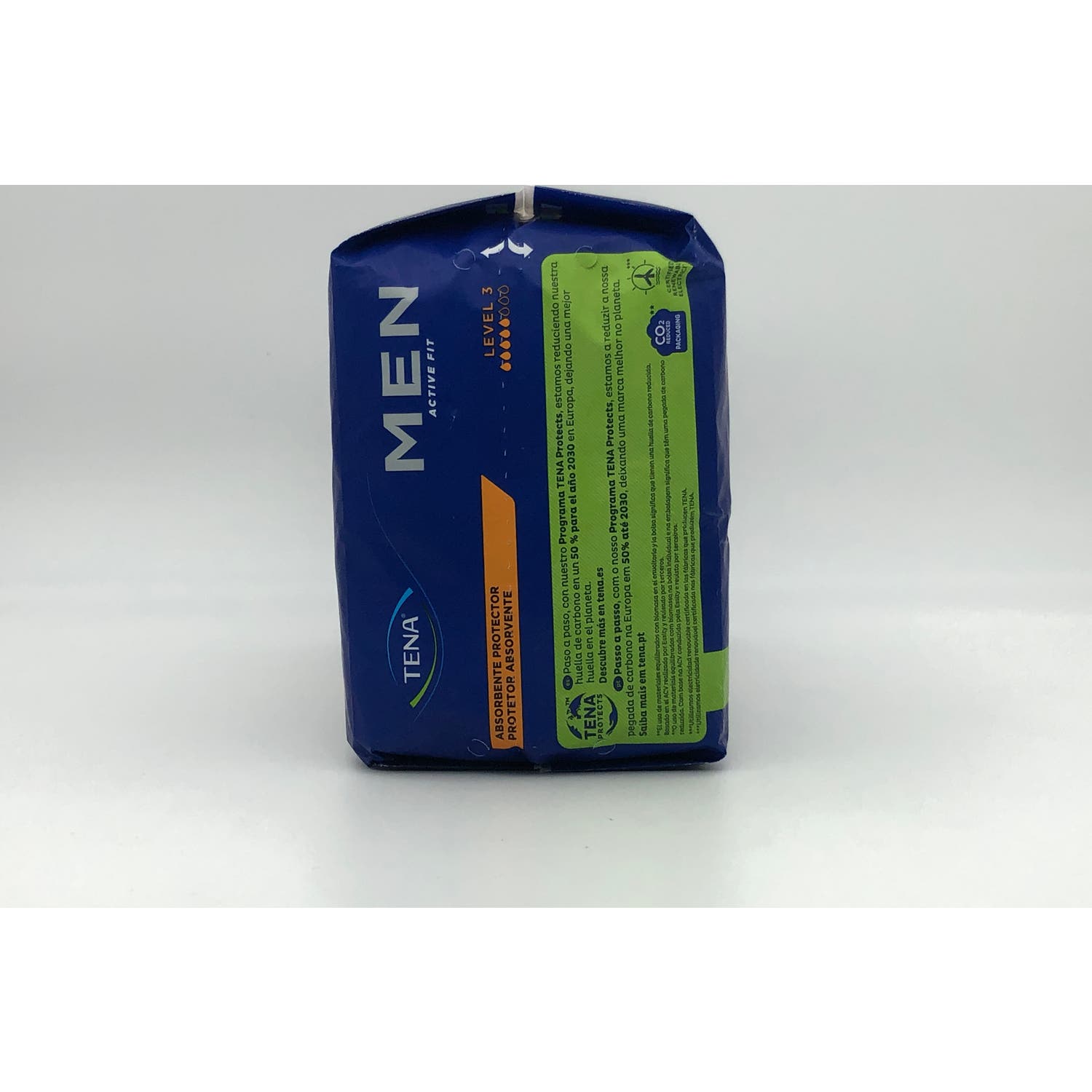 Tena Men Level 3 16uds está pensada como ropa interior para los casos de incontinencia más elevados y para uso nocturno. Aporta una absorción adecuada y seguridad en los casos de pérdidas de orina. Gracias a la forma de cuenco de la compresa, está diseñada para adaptarse a la anatomía masculina, de modo que es cómoda y discreta.