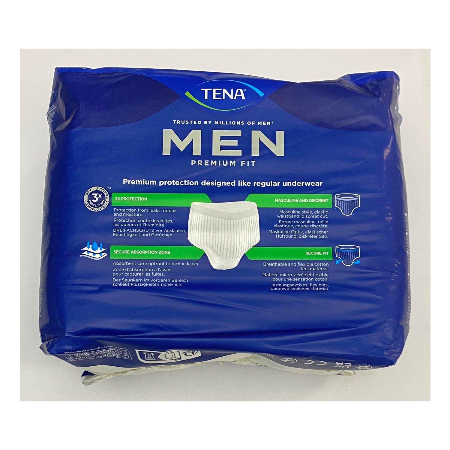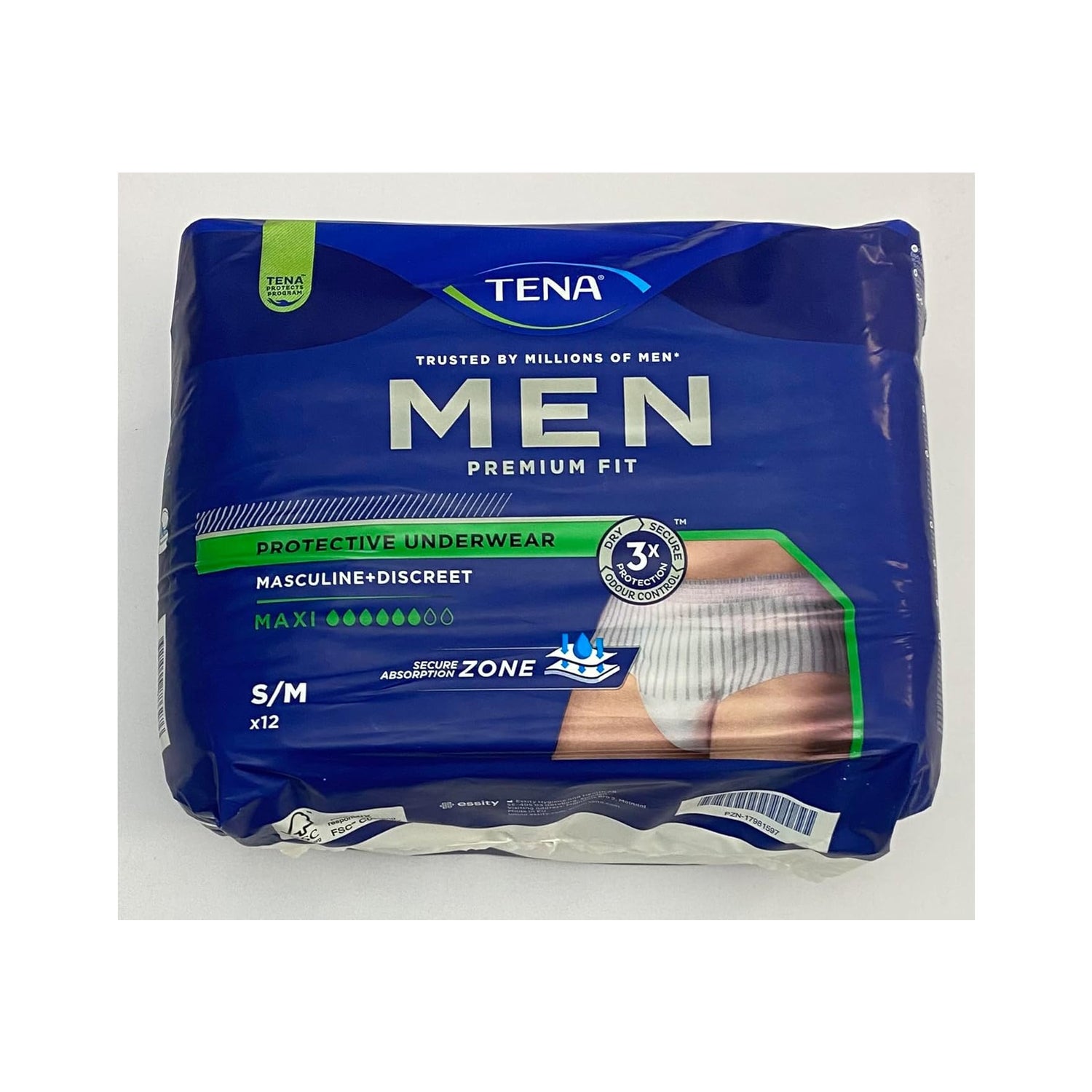 TENA Men Premium Fit Protective Underwear Talla M 12uds son calzoncillos absorbentes indicados para pérdidas de orina.