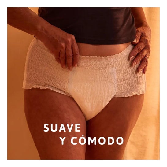 Tena Pants Super T-media 12uds es una braga para la incontinencia o pérdidas de orina muy abundantes. Puede ser usada de manera indistinta tanto por hombres como por mujeres, pues su diseño es anatómicamente adaptable a las diferentes formas del cuerpo. Su composición de algodón la hace cómoda y confortable, además incluye la tecnología ConfioFit™ que funciona como una barrera antifugas y colabora a la neutralización de olores.