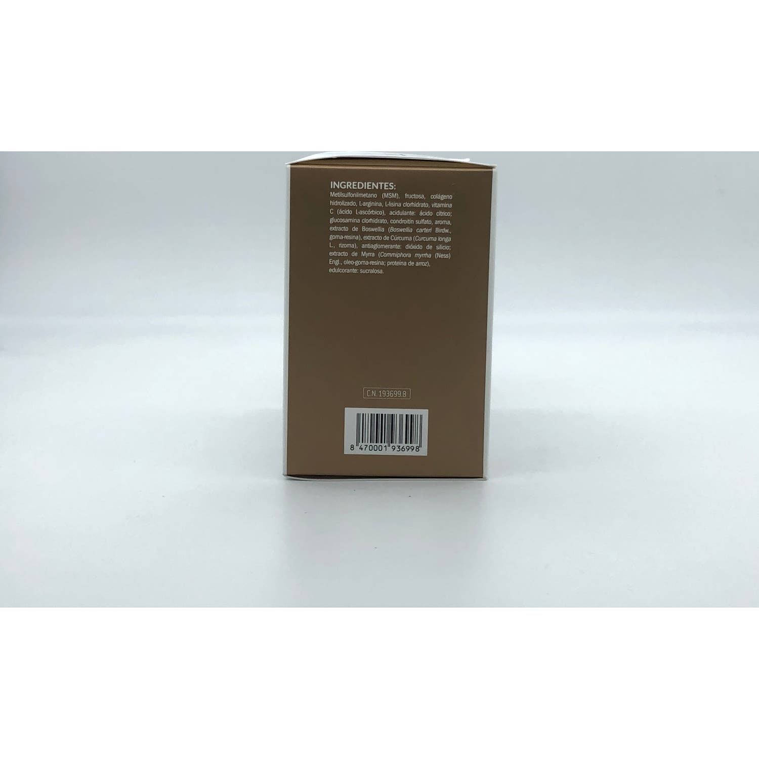 Está elaborado a partir de metilsulfonilmetano, colágeno hidrolizado, condroitina-sulfato, L-arginina, L-lisina, vitamina C y extractos vegetales para apotrar todos los nutrientes necesarios para una buena funcionalidad y recuperación.