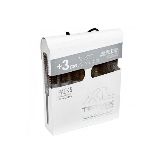 Pack de cepillos para el pelo fabricados con filamentos resistentes al calor y fibras ionizadas de nylon. Ayuda a crear diferentes estilos de peinados y facilita el uso de las herramientas de calor. Incluye 5 cepillos con diámetros de 17, 23, 28, 32 y 43 cm.