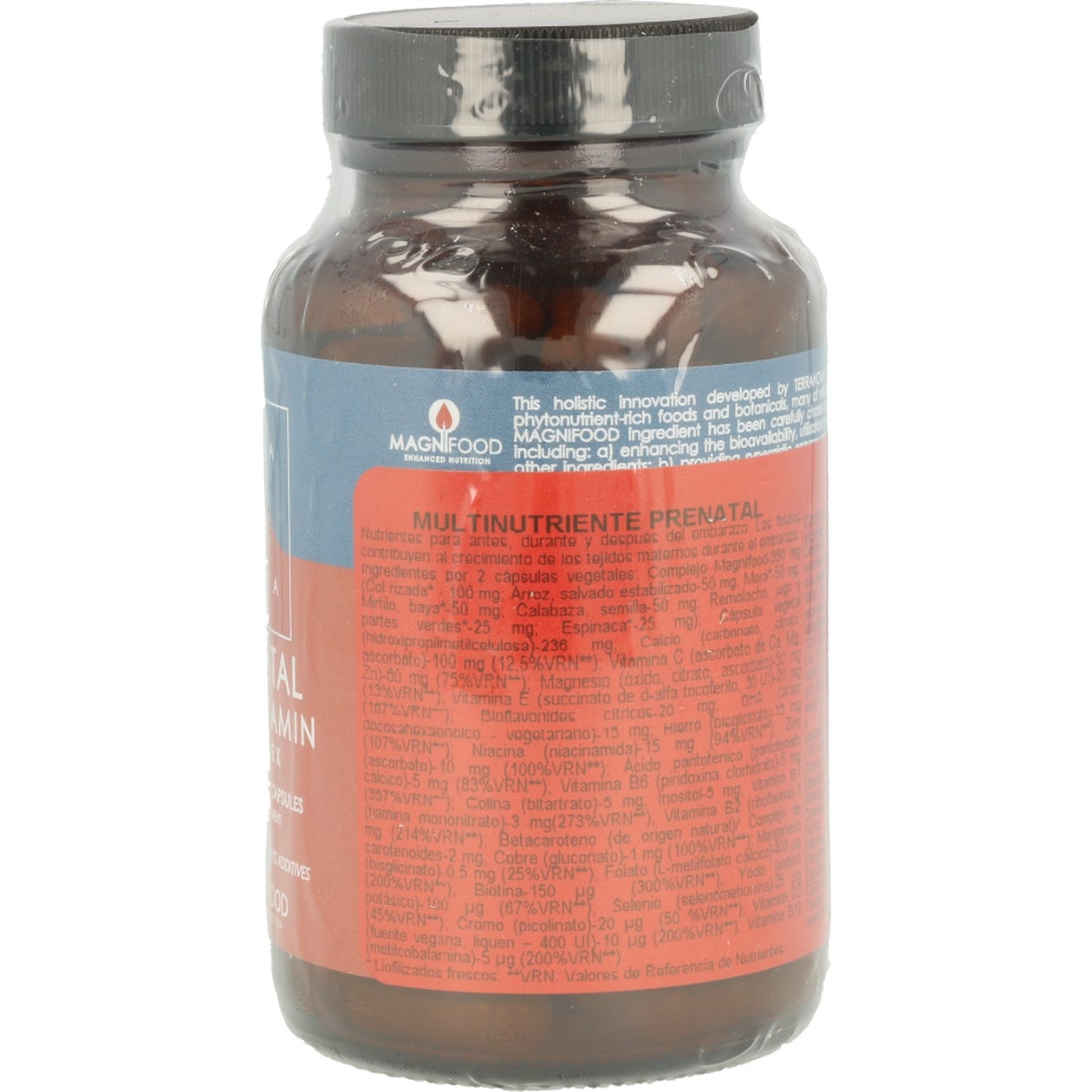 Complemento alimenticio prenatal, elaborado a base de vitaminas y minerales que aportan los nutrientes necesarios durante el embarazo y la lactancia.