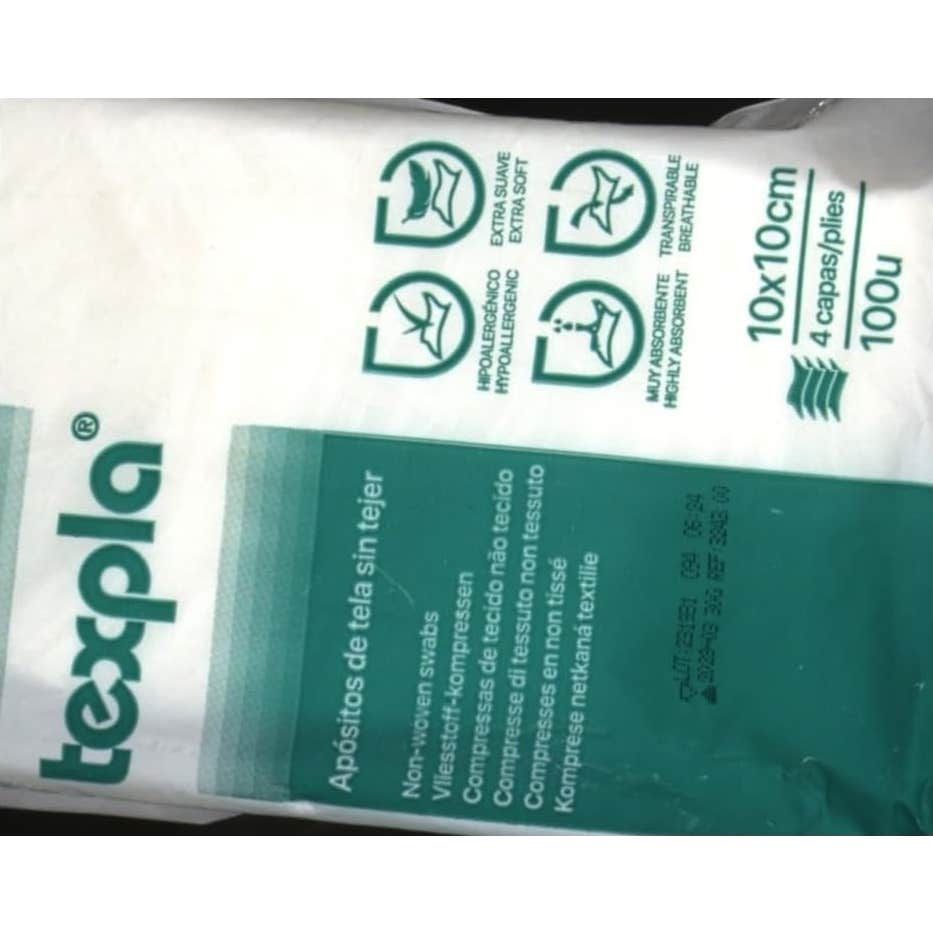 Texpla Aposito 10x10 100ud son apósitos de tela sin tejer hipoalergénicos no estériles para curar heridas y que permiten proteger pieles delicadas.