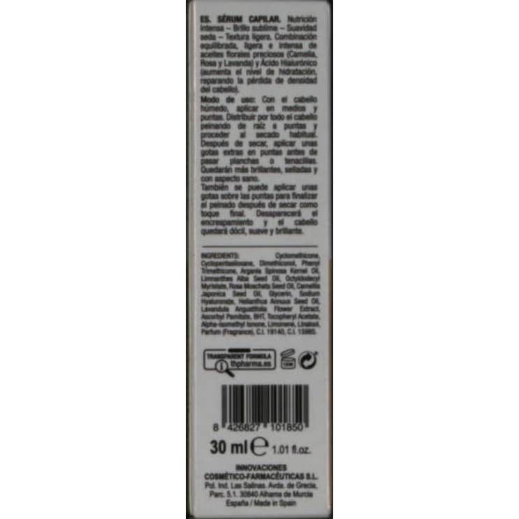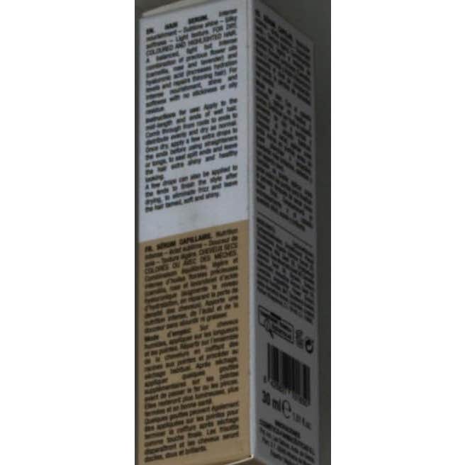 Sérum con efecto brillo que ayuda a restaurar la hidratación del cabello. Formulado a base de ácido hialurónico y oro líquido, que contribuye a nutrir la fibra capilar en profundidad y aporta suavidad. Favorece la protección de color del pelo, mientras estimula la reparación de los enlaces capilares dañados y puntas abiertas. Cuenta con una textura no grasa de agradable aroma floral, que no requiere aclarado. Adecuado para cabellos secos, coloreados o con mechas. Apto para veganos.
