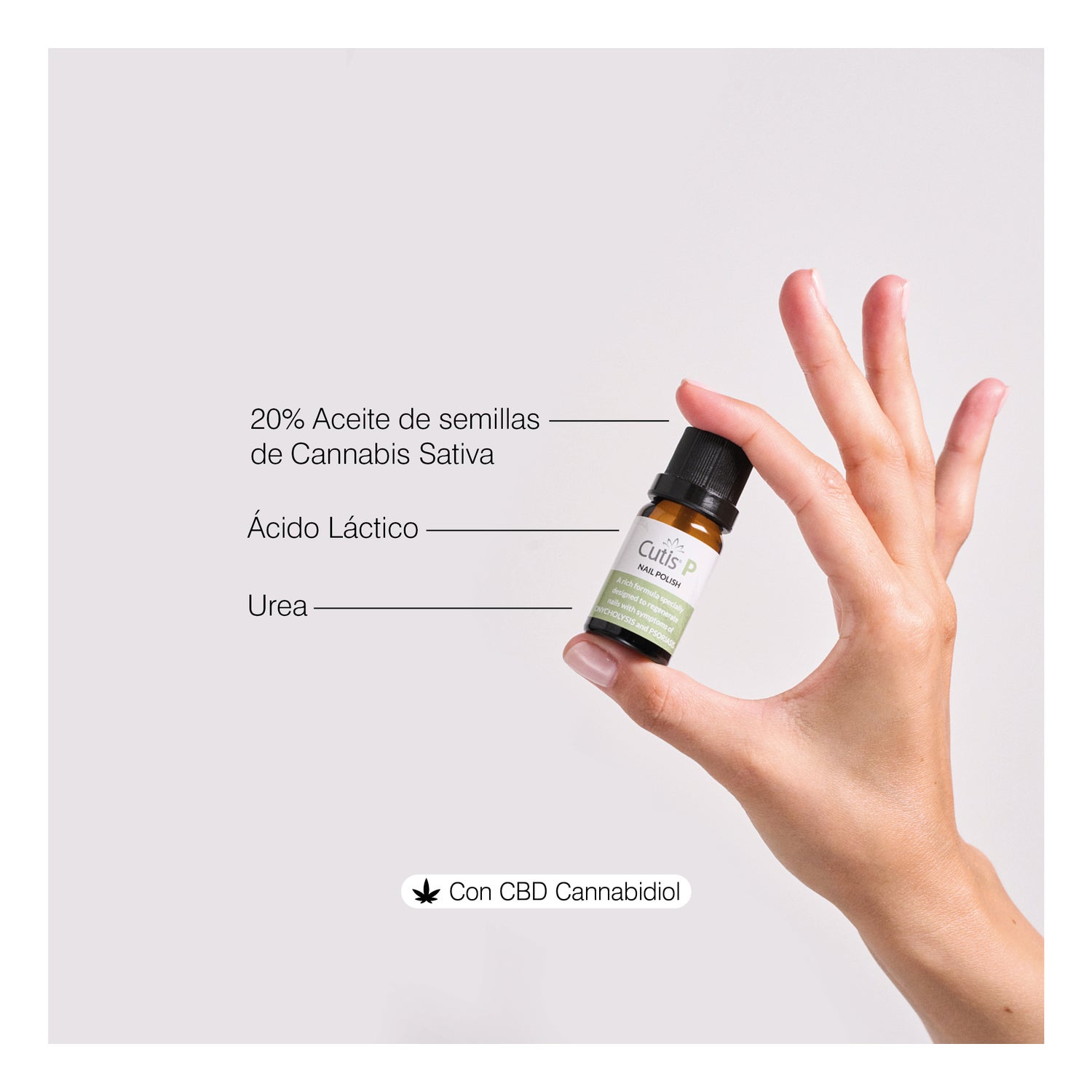 Esmalte de uñas a base de cannabidiol destinado al cuidado diario de las uñas de las manos y los pies propensas a romperse.