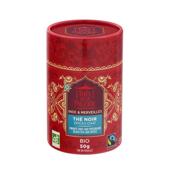 Infusión de té negro chai de origen biológico con certificado verde que garantiza que es un producto que ha sido elaborado íntegramente con productos procedentes de la agricultura ecológica, siendo respetuosos con el medio ambiente. Se trata de un producto apto para una alimentación vegetariana y vegana, y que no contiene gluten, aditivos o conservantes.