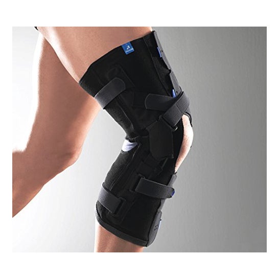 Es una rodillera de alta calidad para limitar la flexión y extensión de 0 a 150 grados gracias a una bisagra fisiológica patentada. El sistema de correa cruzada en el muslo proporciona más estabilidad y mejor soporte. La rodillera es fácil de colocar gracias a una abertura de cinco vías en la parte delantera y una abertura para la rótula en el medio. Talla 2: 34 - 36cm. Color: Negro.