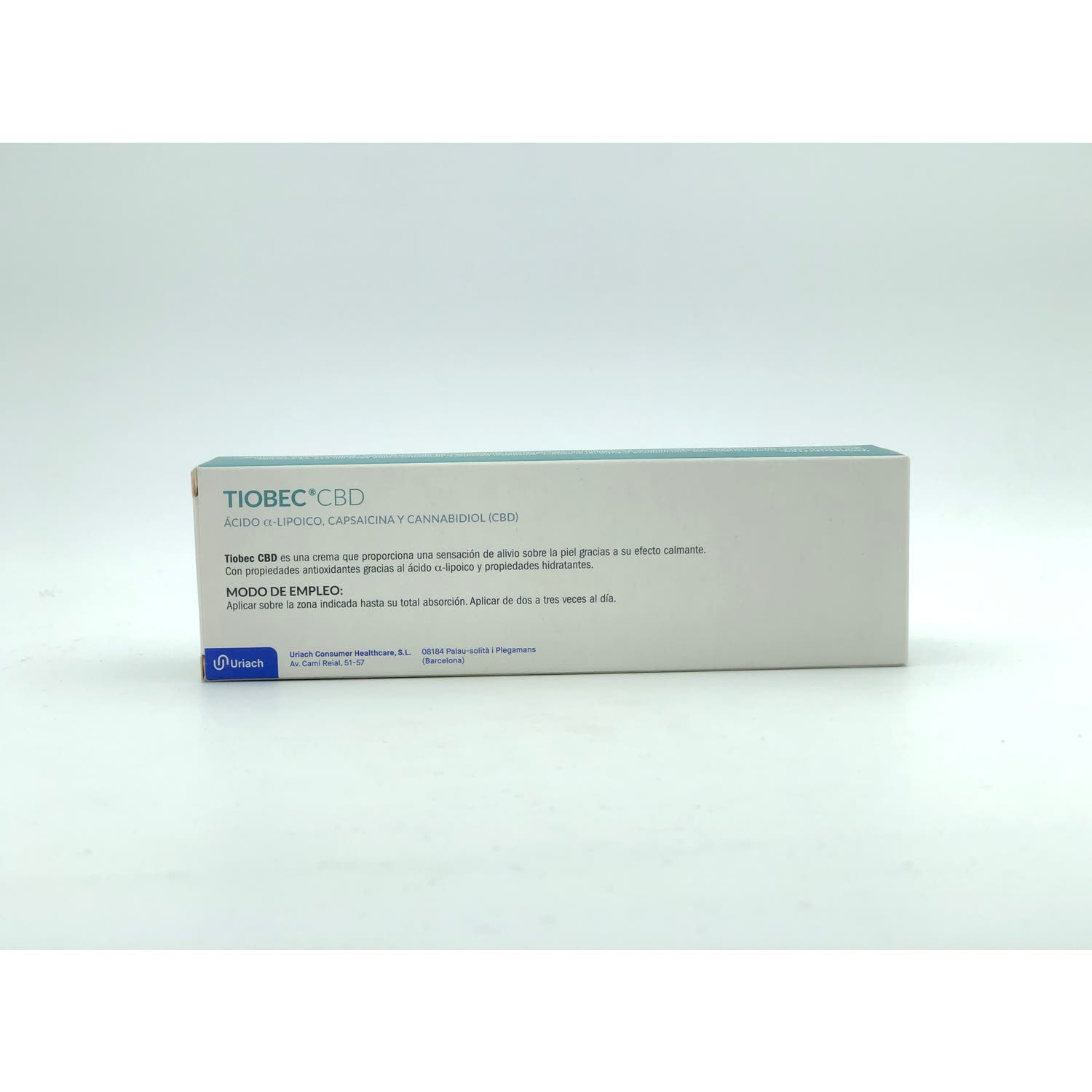 Tiobec CBD Crema 60ml es una crema de uso tópico a base de ácido alfa-lipoico, cannabidiol (CBD) y capsaicina que proporciona un efecto rubefaciente inmediato y bienestar sobre la piel. Su rica composición tiene propiedades antioxidantes gracias al ácido alfa-lipoico y propiedades hidratantes. También contiene capsaicina y cannabidiol (CBD) que proporcionan una sensación de bienestar a través de un suave masaje. El beta-cariofileno y el extracto de mirra, son sustancias naturales ampliamente utilizadas en fitoterapia que, junto con el cannabidiol, proporcionan un efecto reconfortante cutáneo.