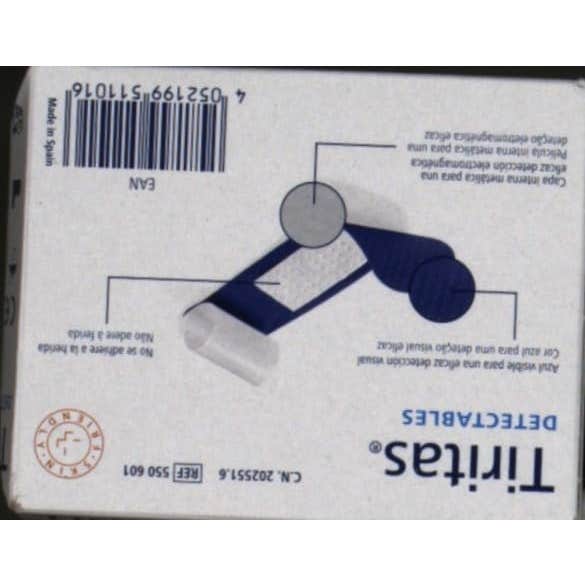 Tiritas Detectables Aposito Adhesivo 19 X 72 son unas tiritas azules en escaners para uso profesional y doméstico. No se adhieren a la herida, impidiendo así que sufra durante la retirada de la tirita.