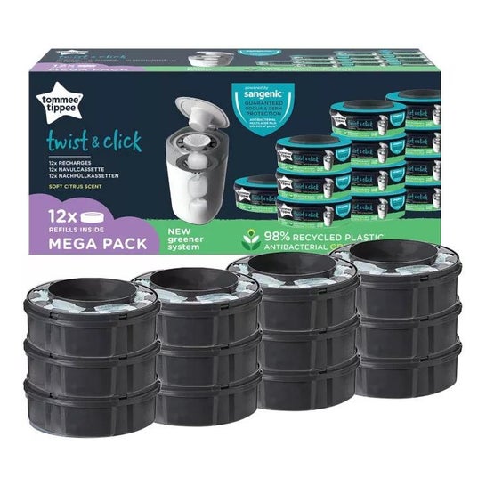 Tommee Tippee Twist Recambios Sangenic Tec 12 Set es un pack de 12 recambios para el contenedor de pañales Sangenic Twist&Click.