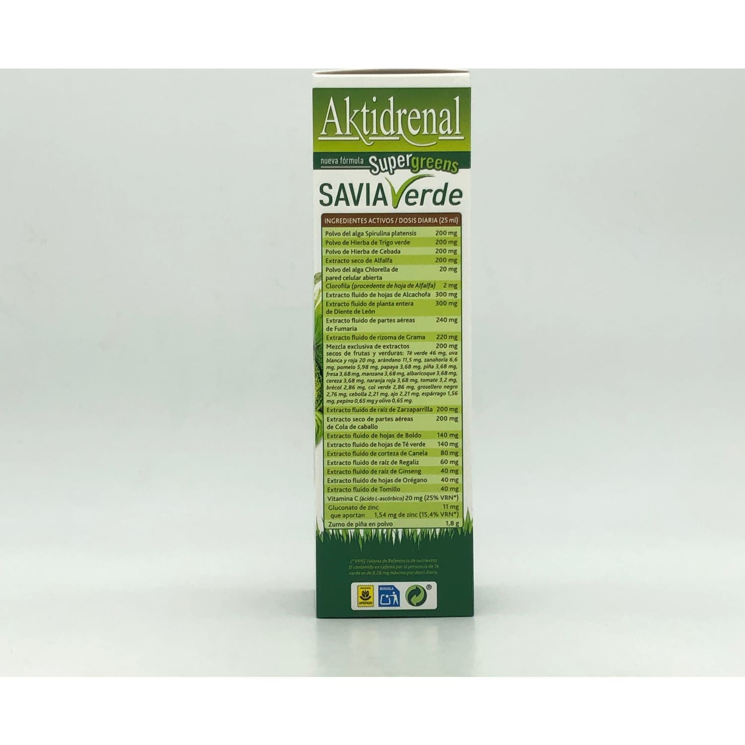 Tongil Aktidrenal Savia Verde 250ml es un complemento alimenticio a que ayuda a expulsar metales pesados y toxinas de forma natural. Contribuye al adecuado funcionamiento del hígado y riñones. Es fuente de vitamina C, zinc, polifenoles y flavonoides; que ayudan a mantener la salud cutánea y muscular.