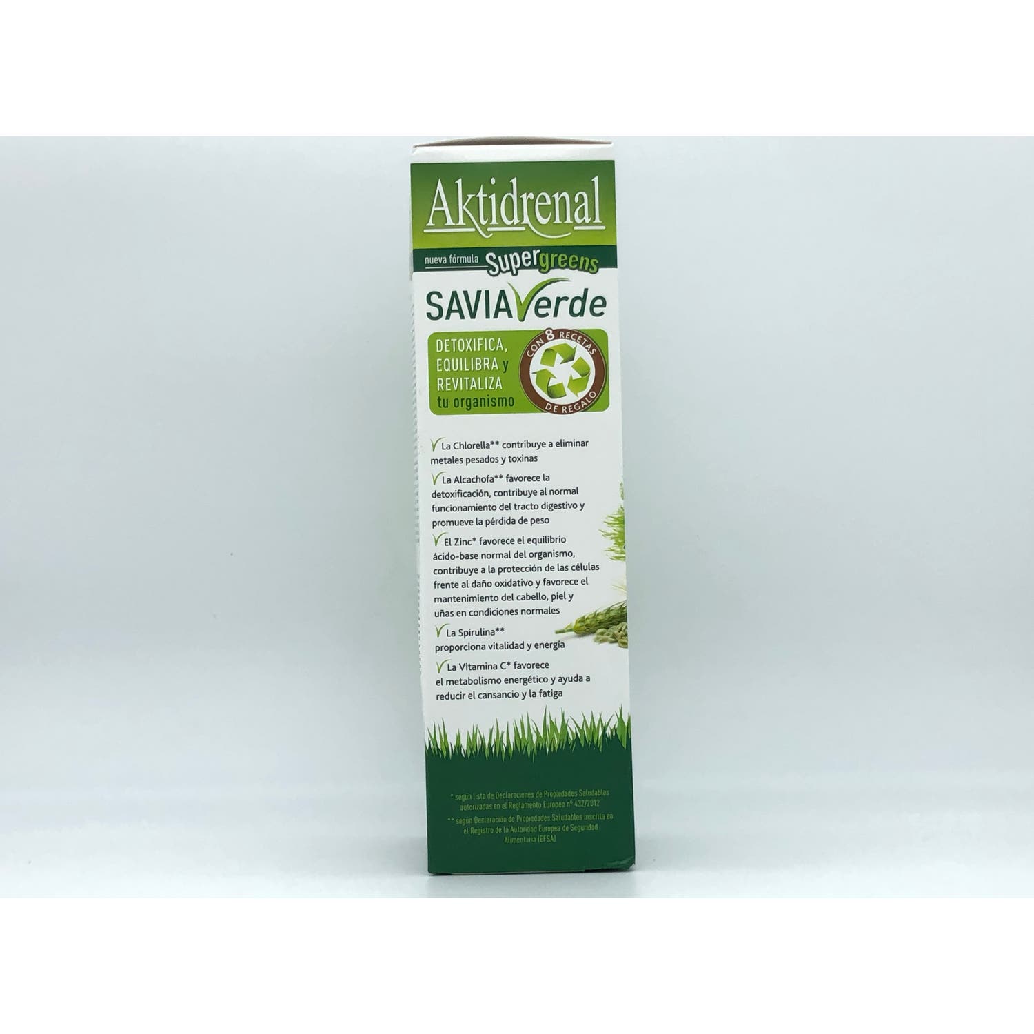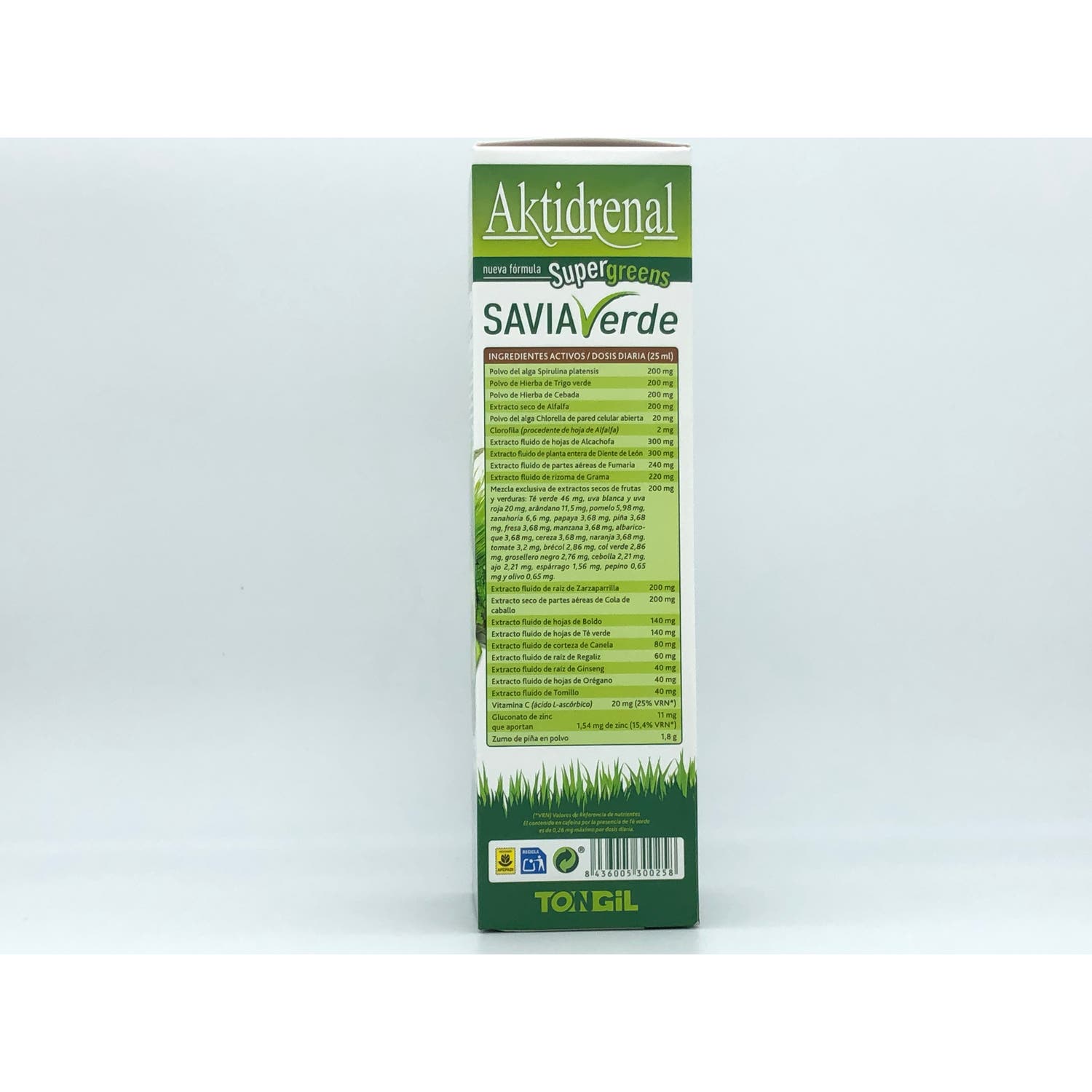 Tongil Aktidrenal Savia Verde 500ml es un complemento alimenticio a que ayuda a expulsar metales pesados y toxinas de forma natural. Contribuye al adecuado funcionamiento del hígado y riñones. Es fuente de vitamina C, zinc, polifenoles y flavonoides; que ayudan a mantener la salud cutánea y muscular.