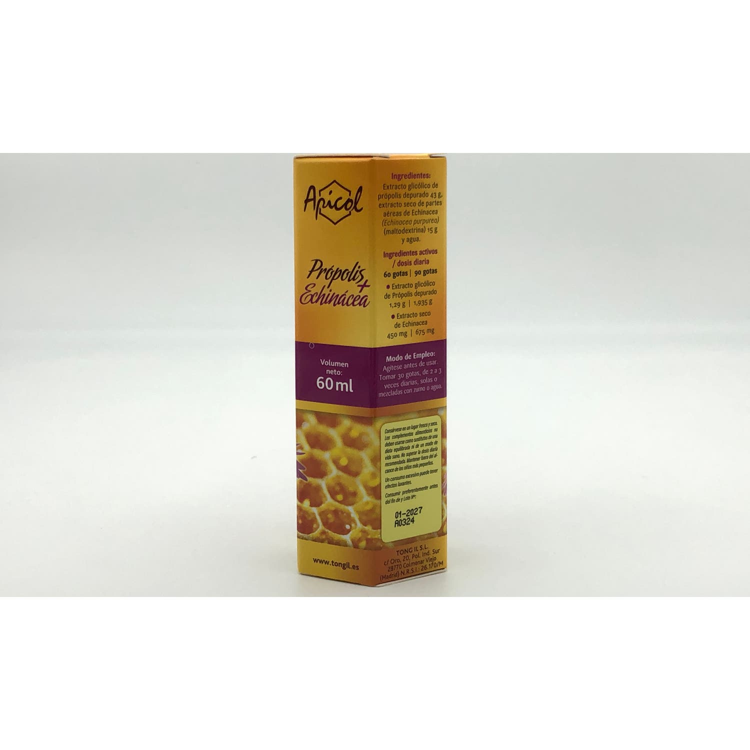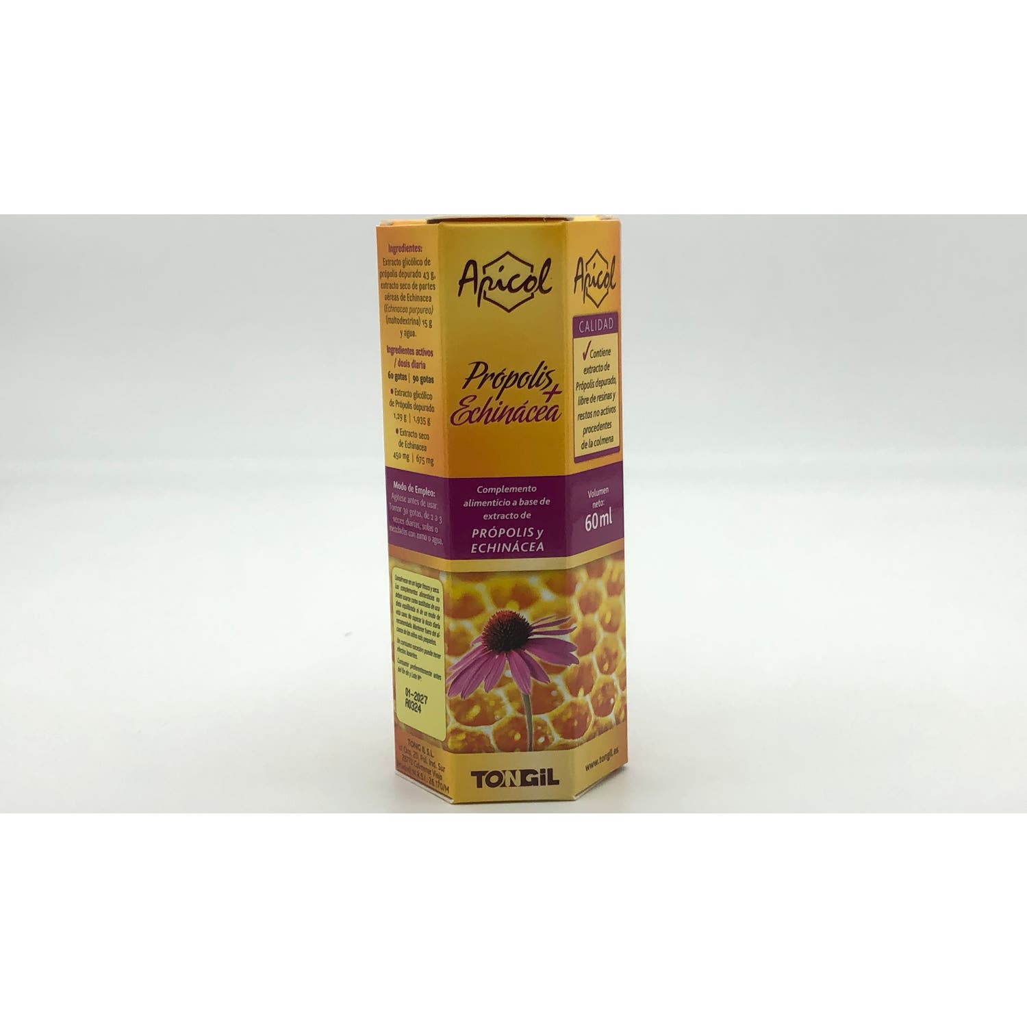 Tongil Apicol Própolis + Echinácea 60ml es un complemento alimenticio en formato líquido formulado a base de própolis depurado y echinácea.