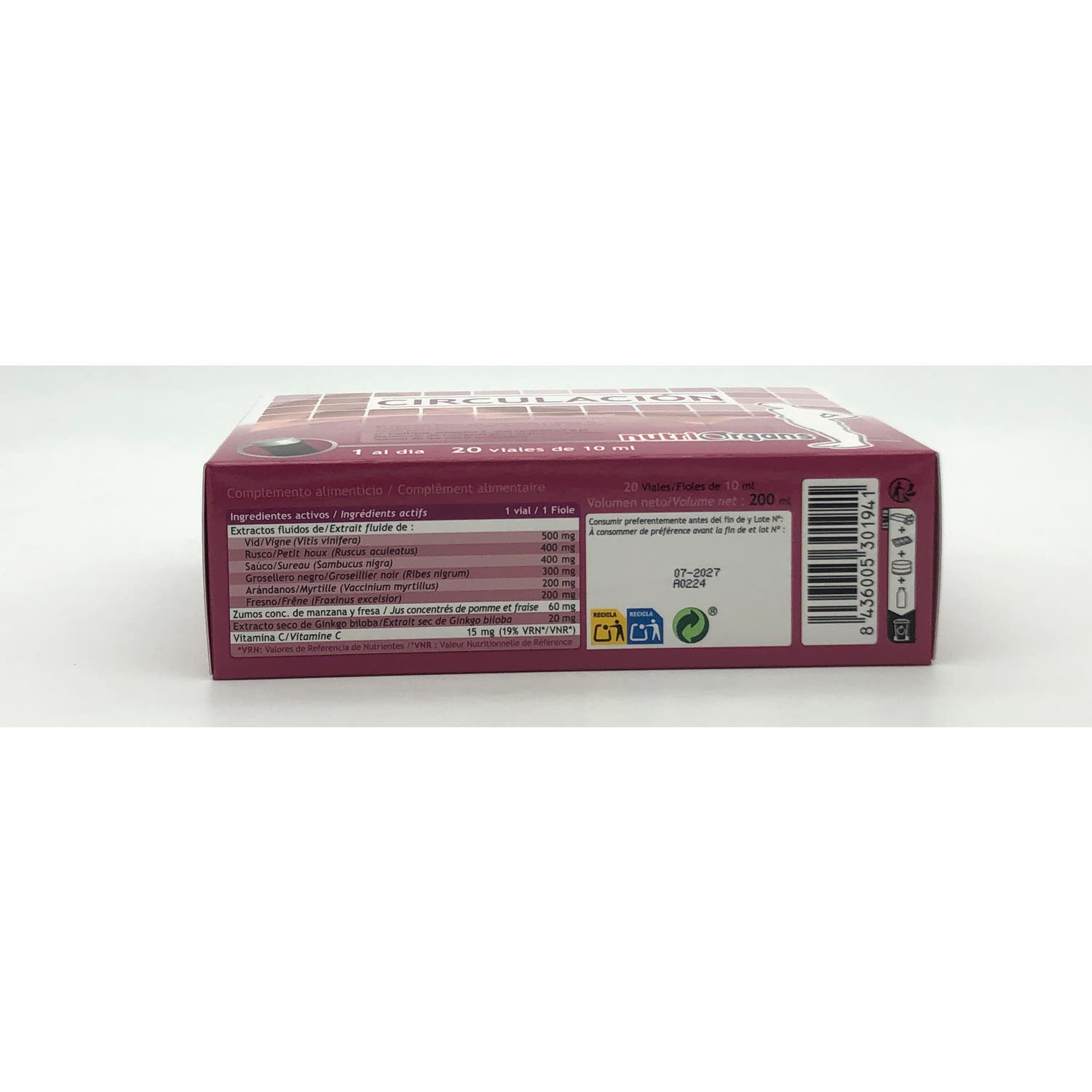 Tongil Nutriorgans Circulación 20viales es un complemento alimenticio a base de extractos de plantas y vitamina C. El rusco alivia y proporciona una sensación de piernas ligeras. La vid mantiene los vasos sanguíneos sanos y la integridad capilar.