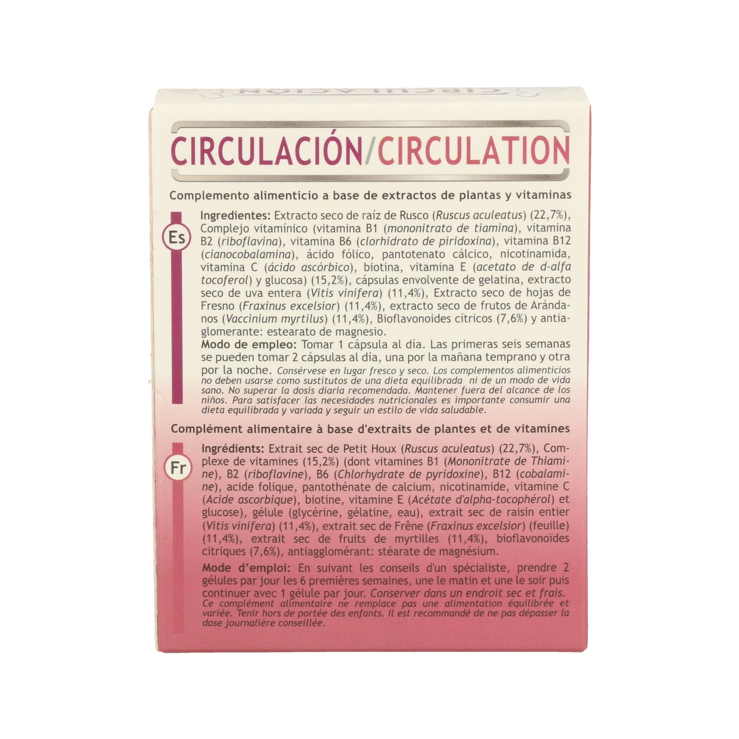 El rusco alivia y proporciona una sensación de piernas ligeras. La vid mantiene los vasos sanguíneos sanos y la integridad capilar. La vitamina C contribuye a la formación normal de colágeno para el funcionamiento normal de los vasos sanguíneos. El ginkgo favorece la circulación periférica.