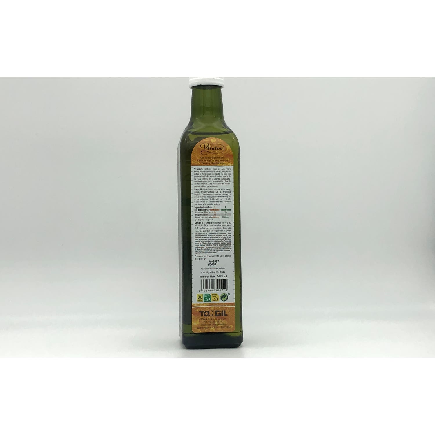 Tongil Vitaloe Jugo Aloe Vera, Papaya y Oligofructosa 500ml es un complemento alimenticio a base de jugo de aloe vera con papaya y oligofructosa. Contribuye a la salud gastrointestinal, favorece la digestión y ayuda a la función del intestino y a la regularidad en los movimientos intestinales. Formulación exclusiva a base de Jugo de Aloe Vera reforzada con Papaya y fibra prebiótica (Oligofructosa).