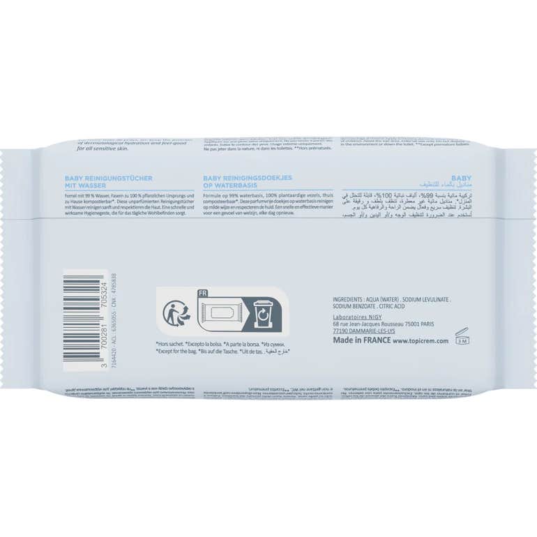 Topicrem Baby Toallitas Húmedas Agua 60uds son un aliado esencial para la limpieza suave y efectiva de la cara, manos y área del pañal de los más pequeños. Estas toallitas están formuladas con un 99% de agua, mientras que el 1% restante se encarga de su conservación, lo que las convierte en un producto ideal para cuidar la piel sensible de los bebés y proporcionar una agradable sensación de frescura.