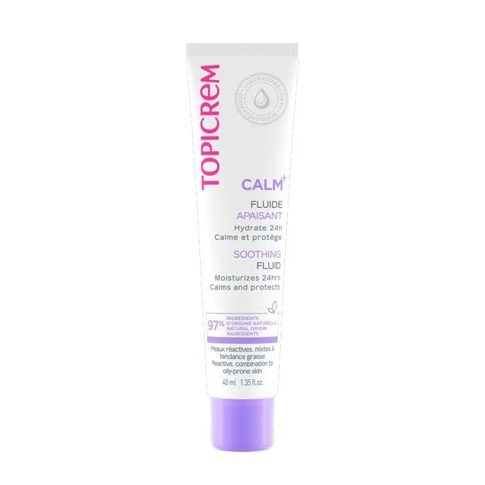 Topicrem Calm+ Fluido Calmante 40Ml es un fluido especialmente formulado para pieles sensibles e intolerantes. Contiene aceites insaponificables de girasol y aceite de ciruela de origen natural que proporcionan hidratación continua a la piel.