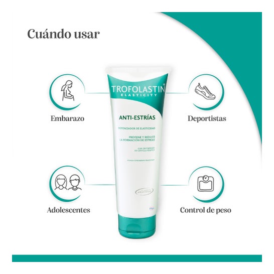 Para obtener resultados óptimos, se recomienda aplicar Trofolastin Crema Antiestrías dos veces al día. Aplica una cantidad generosa sobre la zona a tratar, realizando un suave masaje hasta que la crema se absorba completamente. Comienza a usarla lo antes posible ante cualquier cambio físico para que tu piel esté bien preparada. Esta crema es apta para usar desde el comienzo de la etapa de cambios en el cuerpo, como durante el embarazo, cambios de peso o crecimiento en la adolescencia. Se recomienda incluir Trofolastin Crema Antiestrías en tu rutina diaria de cuidado de la piel para maximizar su efectividad. Aplica la crema con movimientos circulares en zonas propensas a estrías, como abdomen, muslos, senos y caderas.