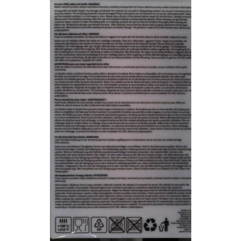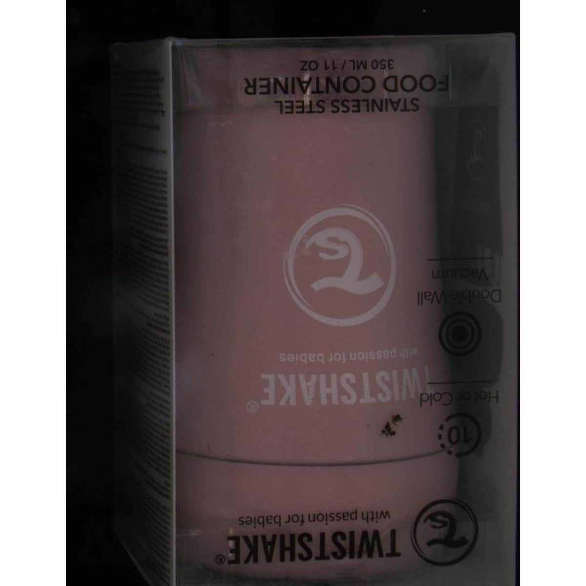 Termo de acero inoxidable color rosa pastel para transportar comida sólida o líquida para bebés. Mantiene los alimentos fríos o calientes, hasta por 10 horas, dependiendo sea el caso. Contiene una cuchara plegable y una base antideslizante para mantener el envase fijo sobre una superficie plana. Tiene una capacidad de 350 mililitros. Se recomienda no lavar en el lavavajillas.