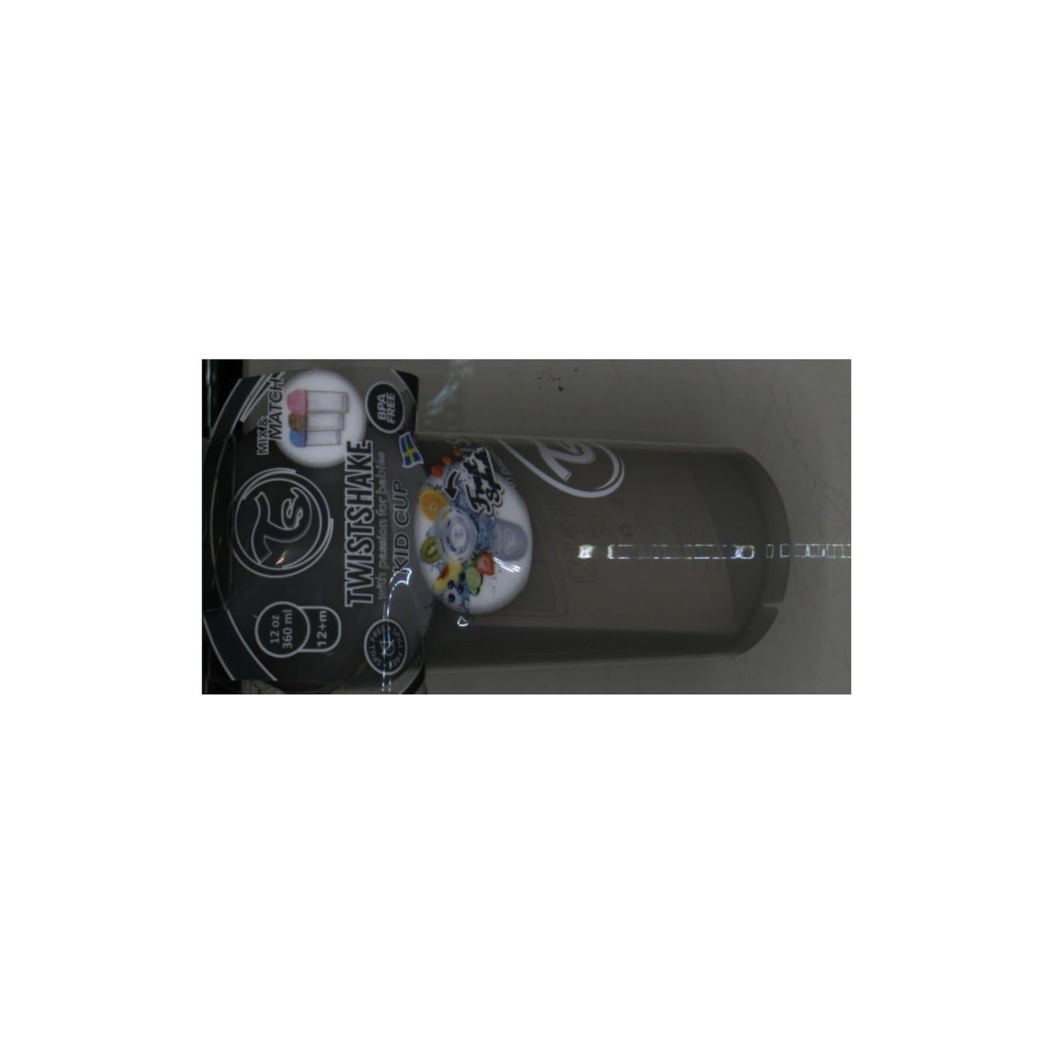 Taza de aprendizaje con tapa y boquilla antigoteo. Trae incorporada una rejilla mezcladora de frutas. Color gris. Favorece la autonomía y comodidad de los más pequeños. Es adecuado para bebidas y batidos fuera o dentro de casa. Indicado para bebés a partir de 12 meses.