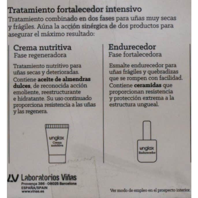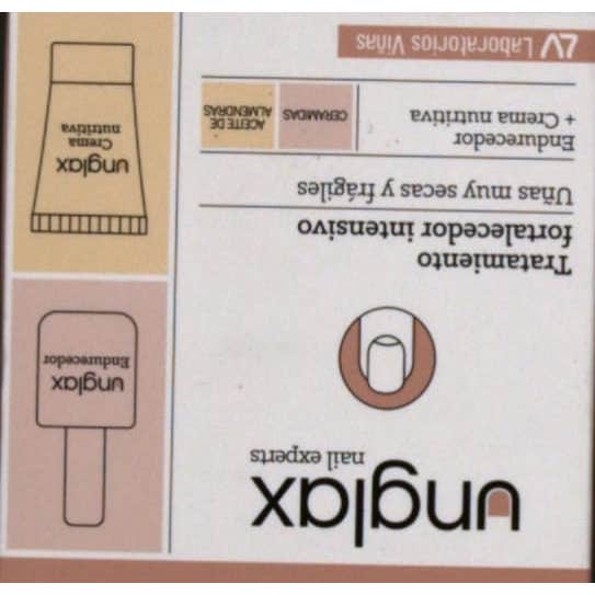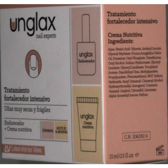 - Unglax crema nutritiva 15ml: crema nutritiva rica en aceite de almendras dulces que presenta una acción reestructurante, emoliente e hidratante.