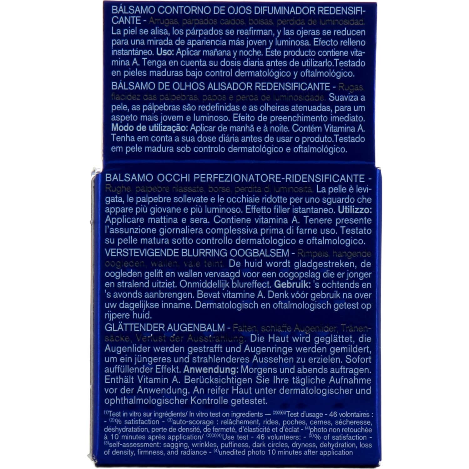 En tan solo 10 segundos, se puede observar una reducción notable en la apariencia de las arrugas y una mejora en la luminosidad del contorno de los ojos, gracias a su textura rebosante que ofrece un efecto difuminador inmediato. Tras un uso continuado de 10 semanas, se corrigen hasta diez signos de la edad, incluyendo: