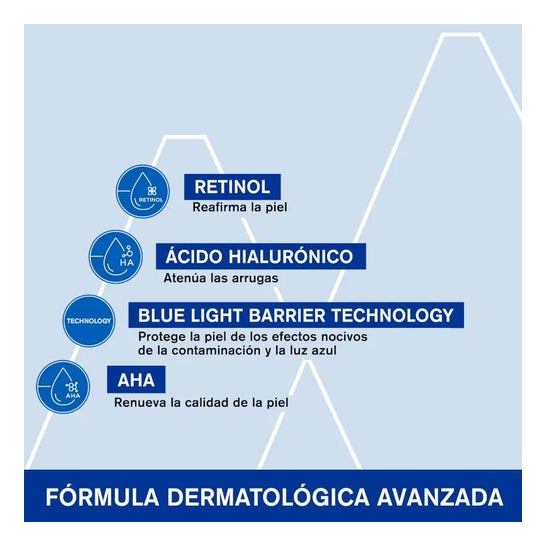 Elaborado a base de retinol, ácido hialurónico y AHA para prevenir la aparición de los signos del envejecimiento y reafirmar la piel. Además, ayuda a atenuar las líneas de expresión, así como la flacidez y las imperfecciones del rostro. También protege contra los efectos de la luz azul y ayuda a alisar la textura de la piel, para un cutis uniforme y mate.
